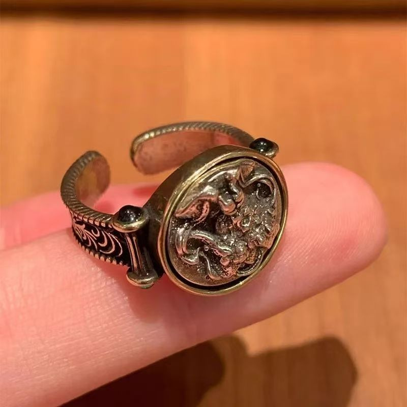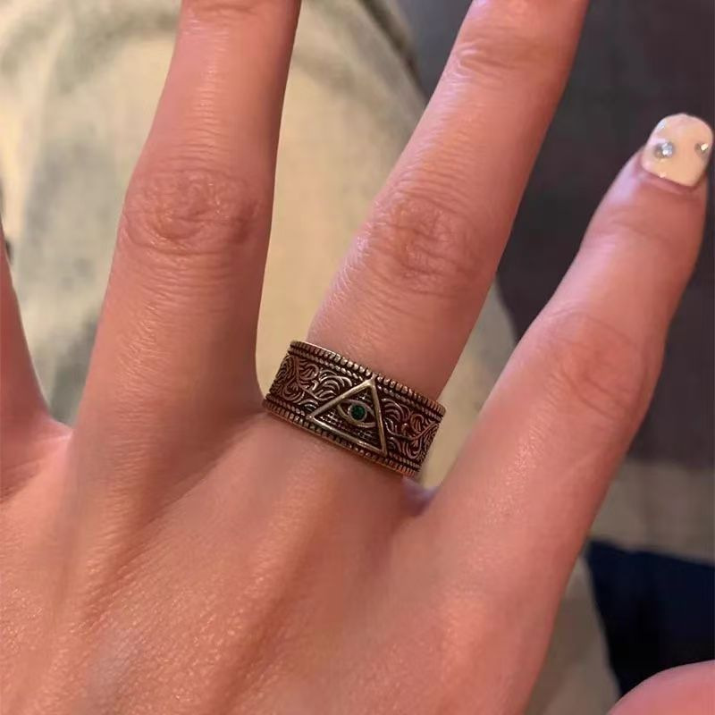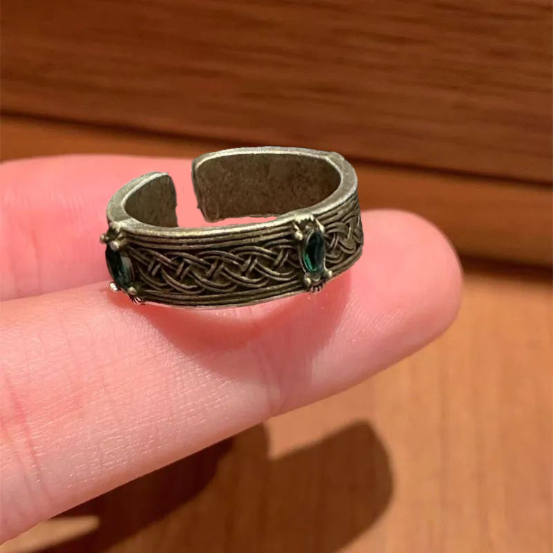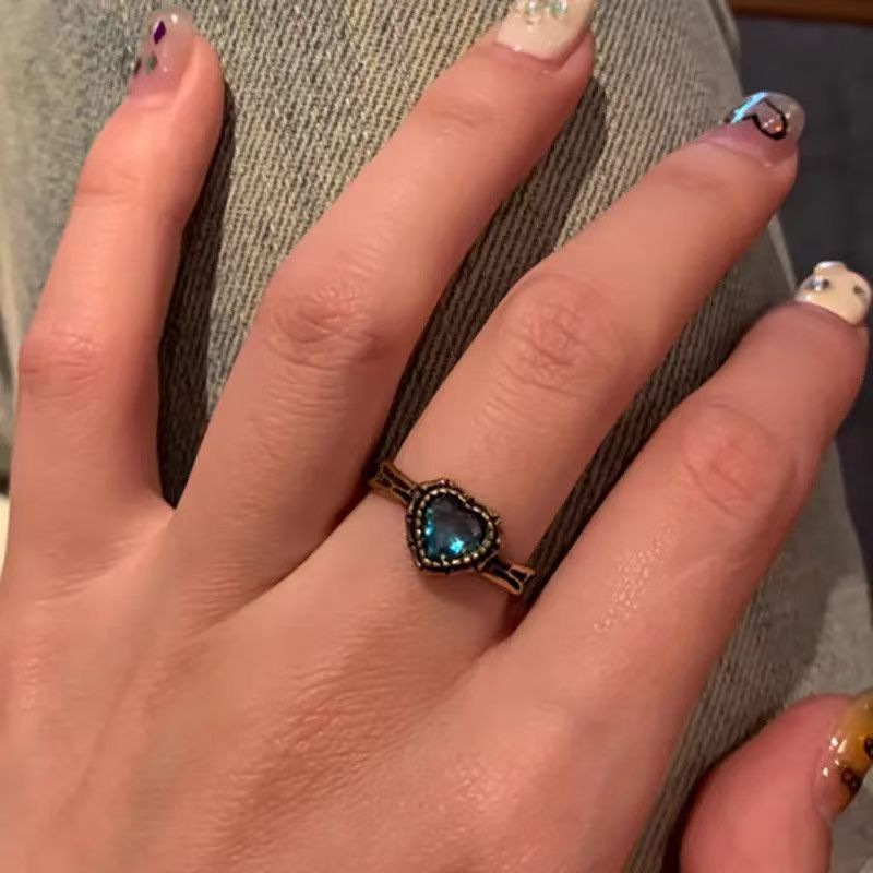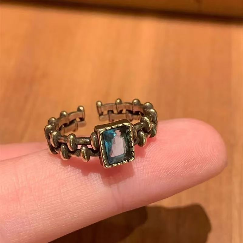 Vintage Distressed Chain Blue Zircon Open Ring, Unisex Niche Design Jewelry