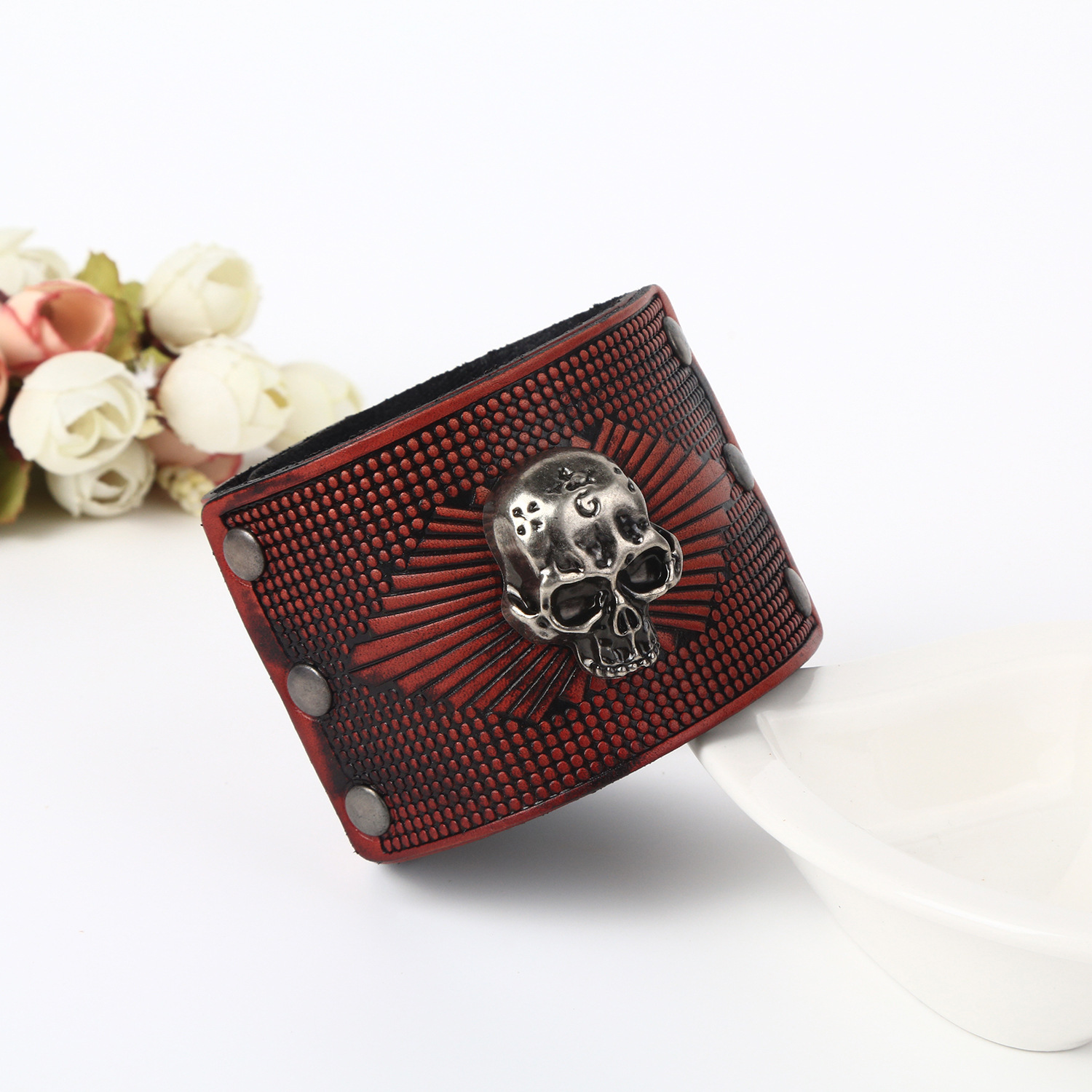 Vintage double layer wide leather woven Bracelet
