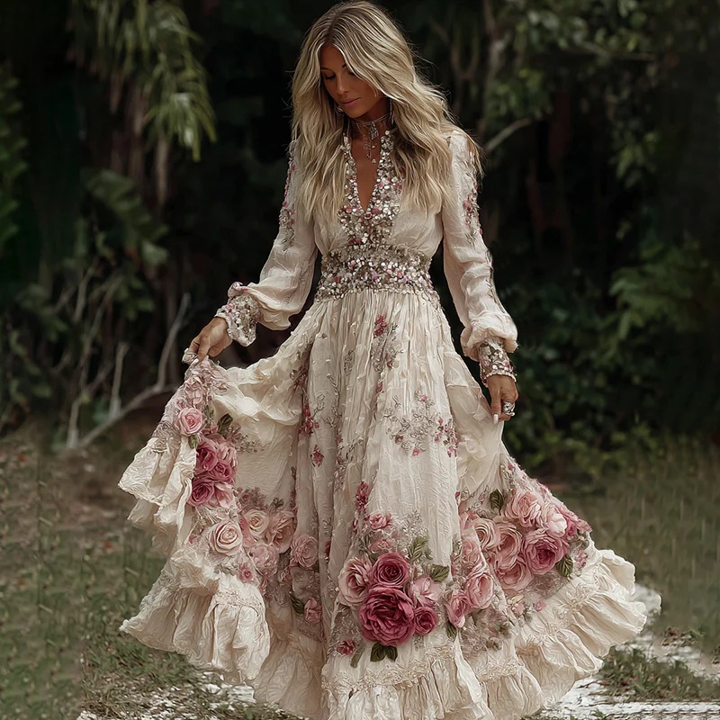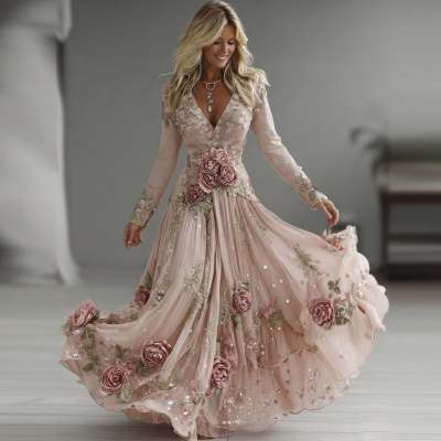 Trendy Elements: V-neck, floral pattern, 3D/embossed pattern