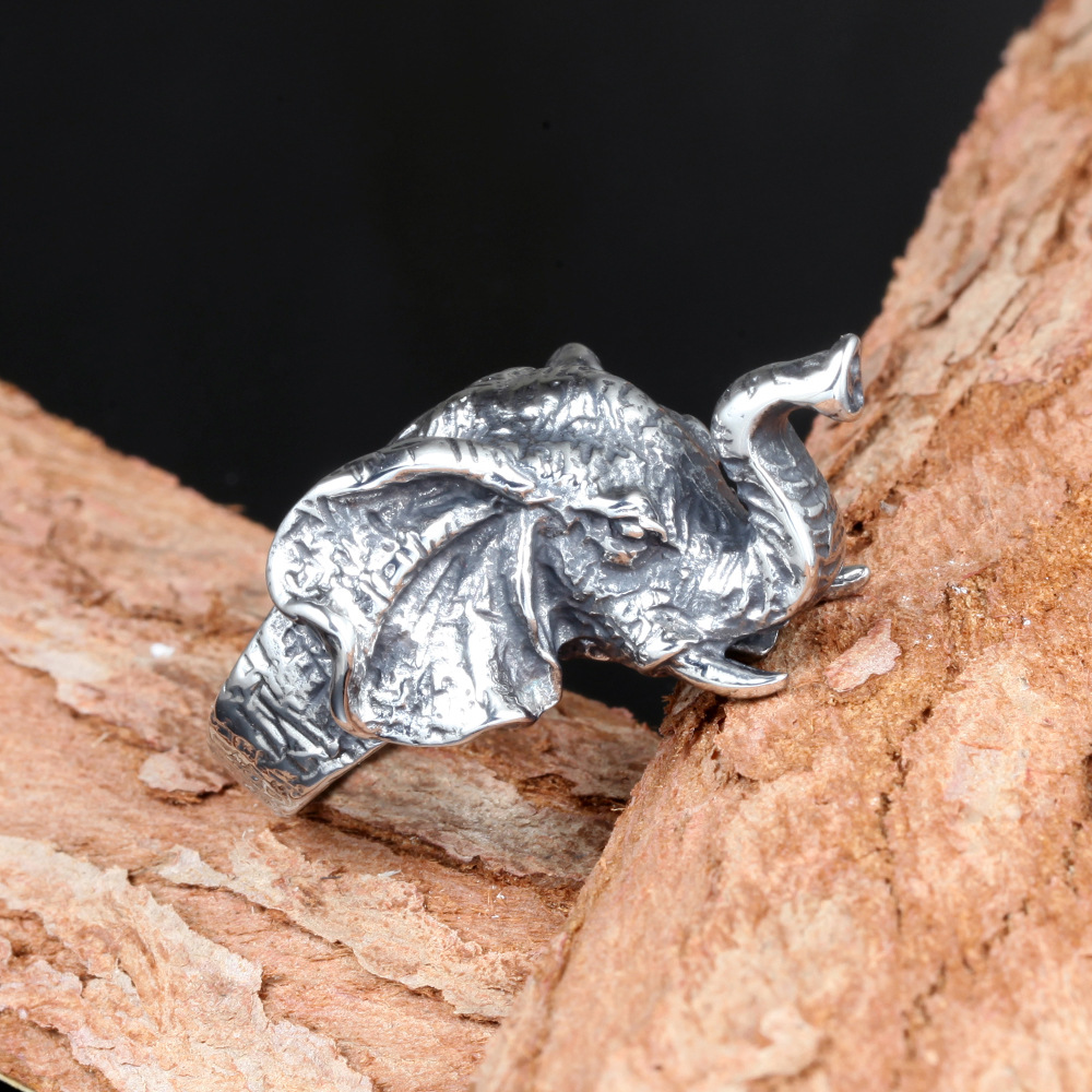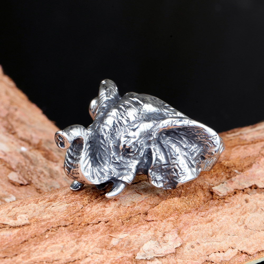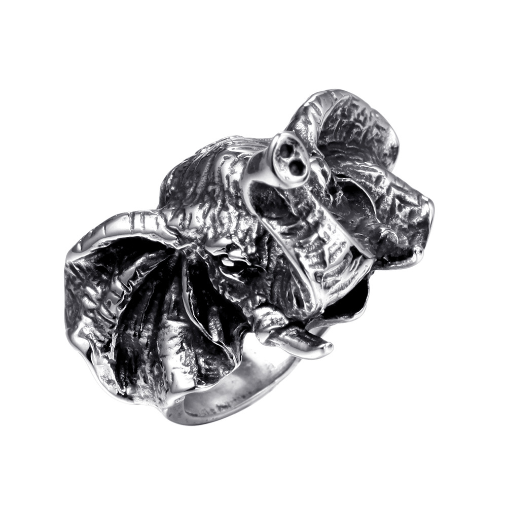 Vintage Elephant Titanium Steel Men's Ring