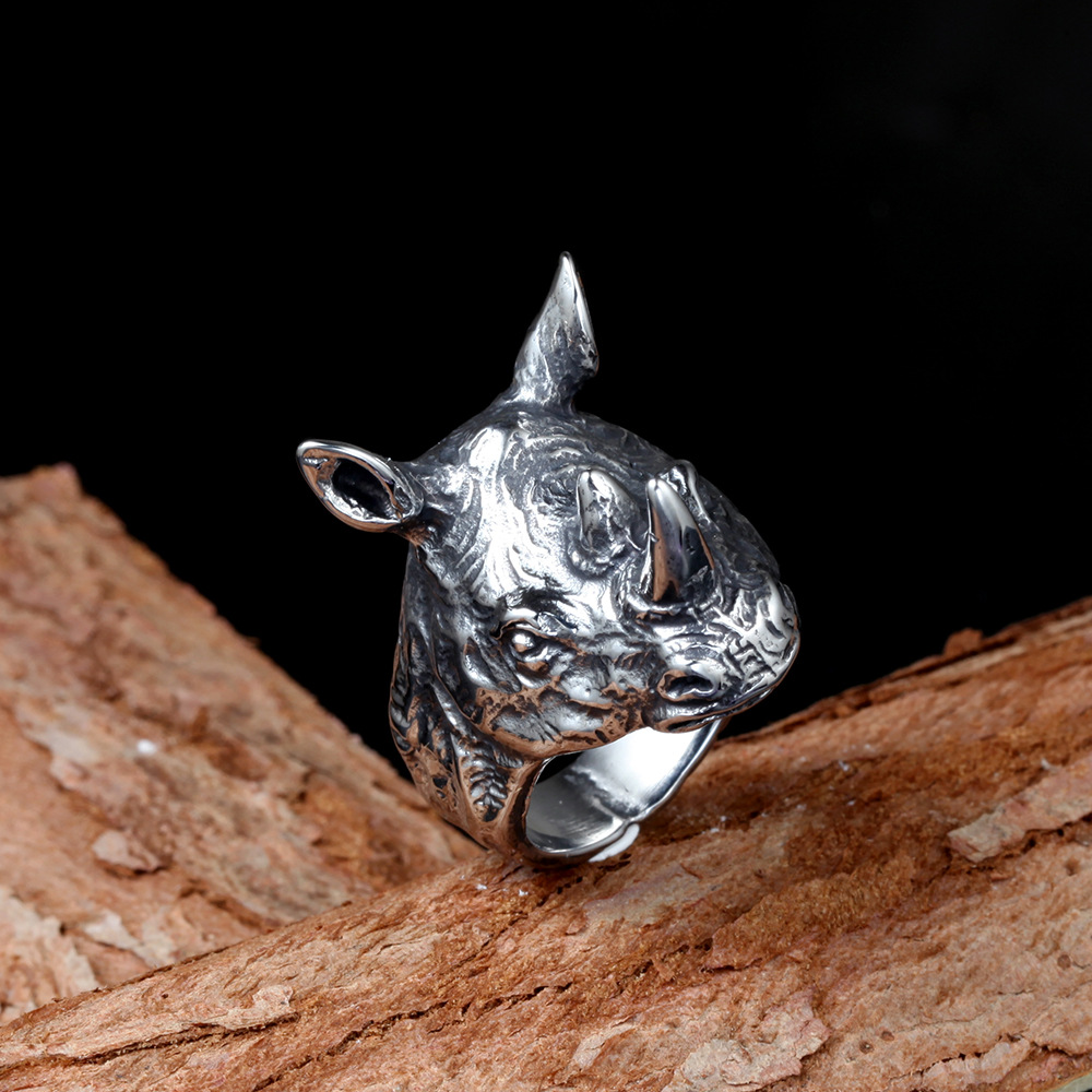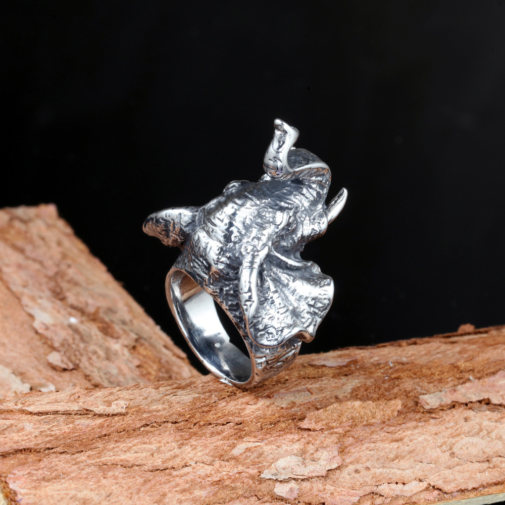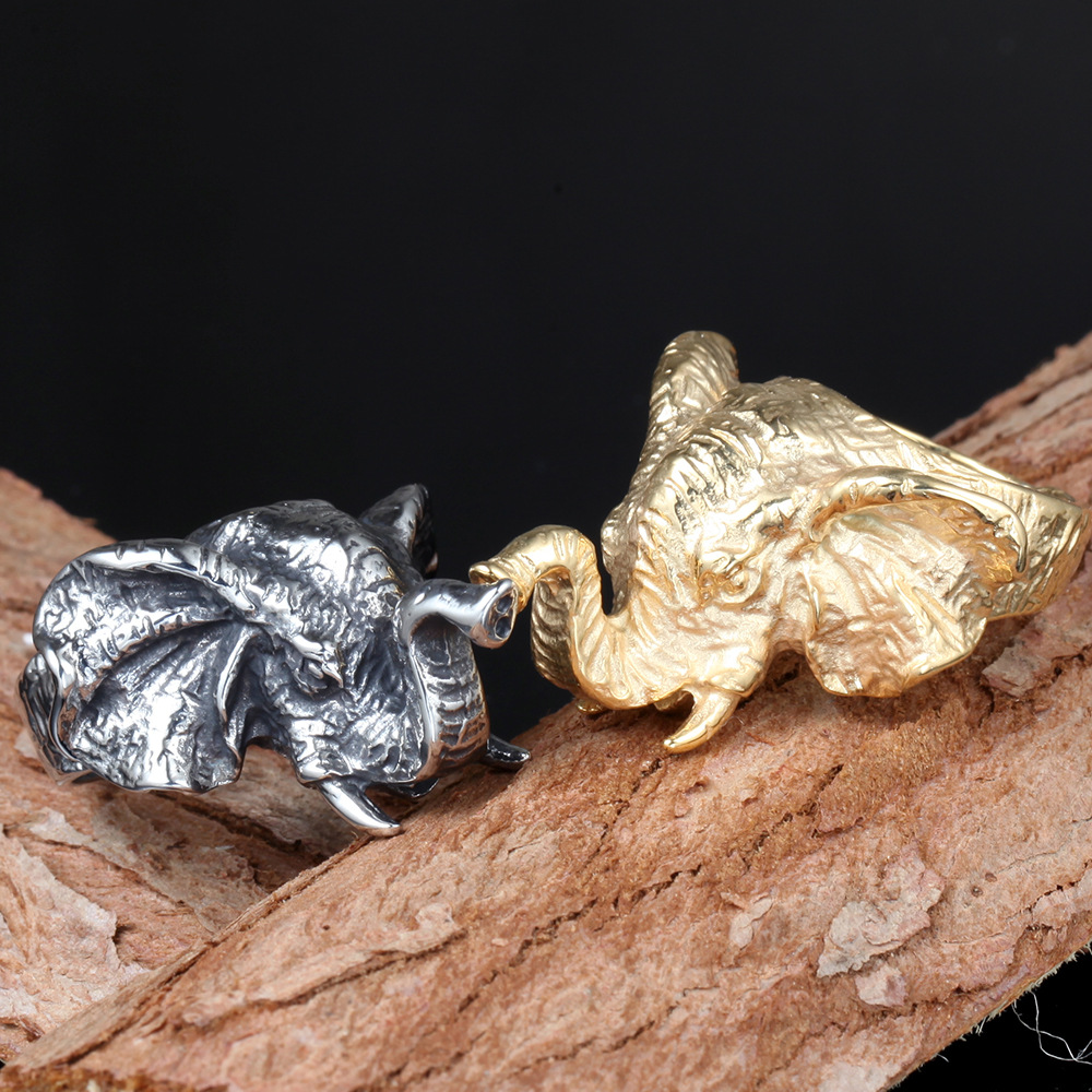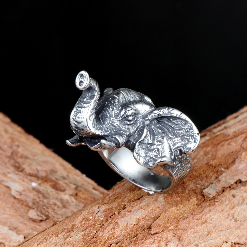 Vintage Elephant Titanium Steel Men's Ring