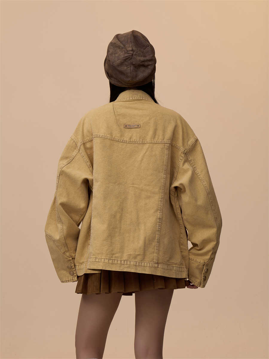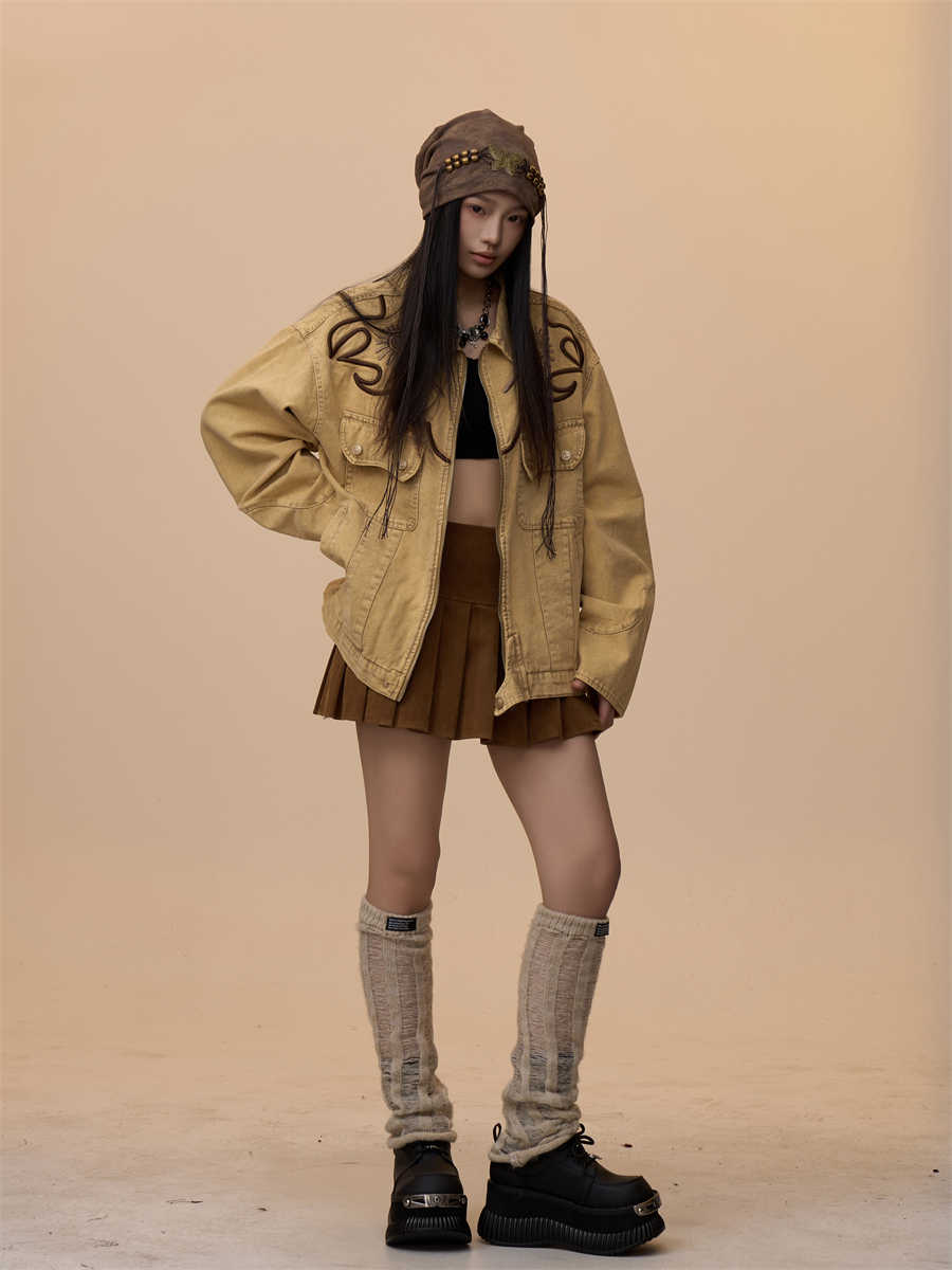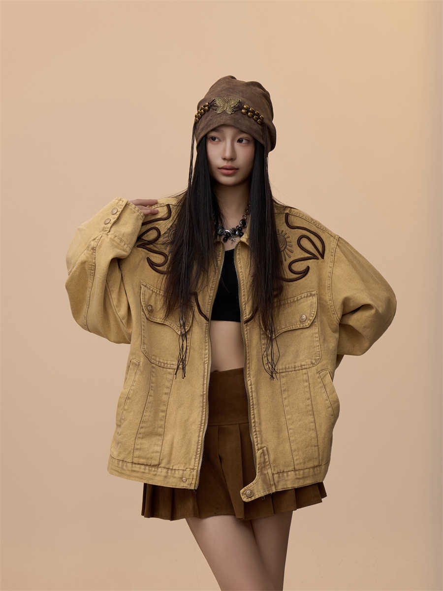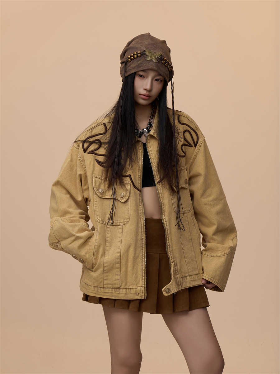Vintage Embroidery Washed Heavy Weight Denim Coat Jacket