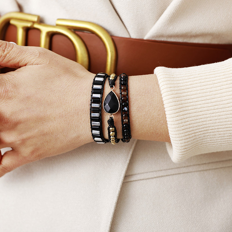 Vintage Ethnic Style Natural Stone Crystal Leather Rope Handmade Bracelet