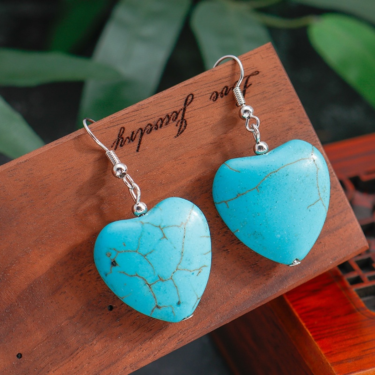 Vintage Ethnic-style Turquoise Drop Earrings With A Hollowed-out Design