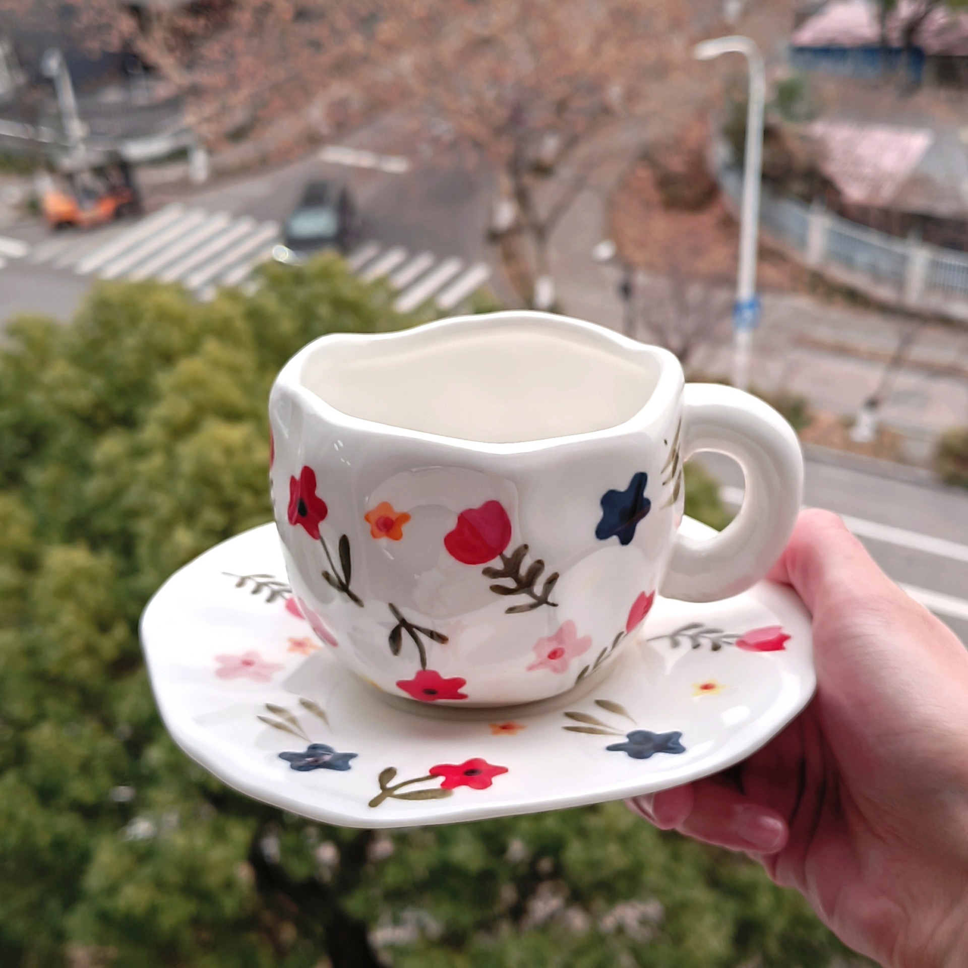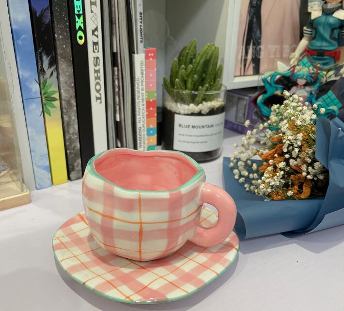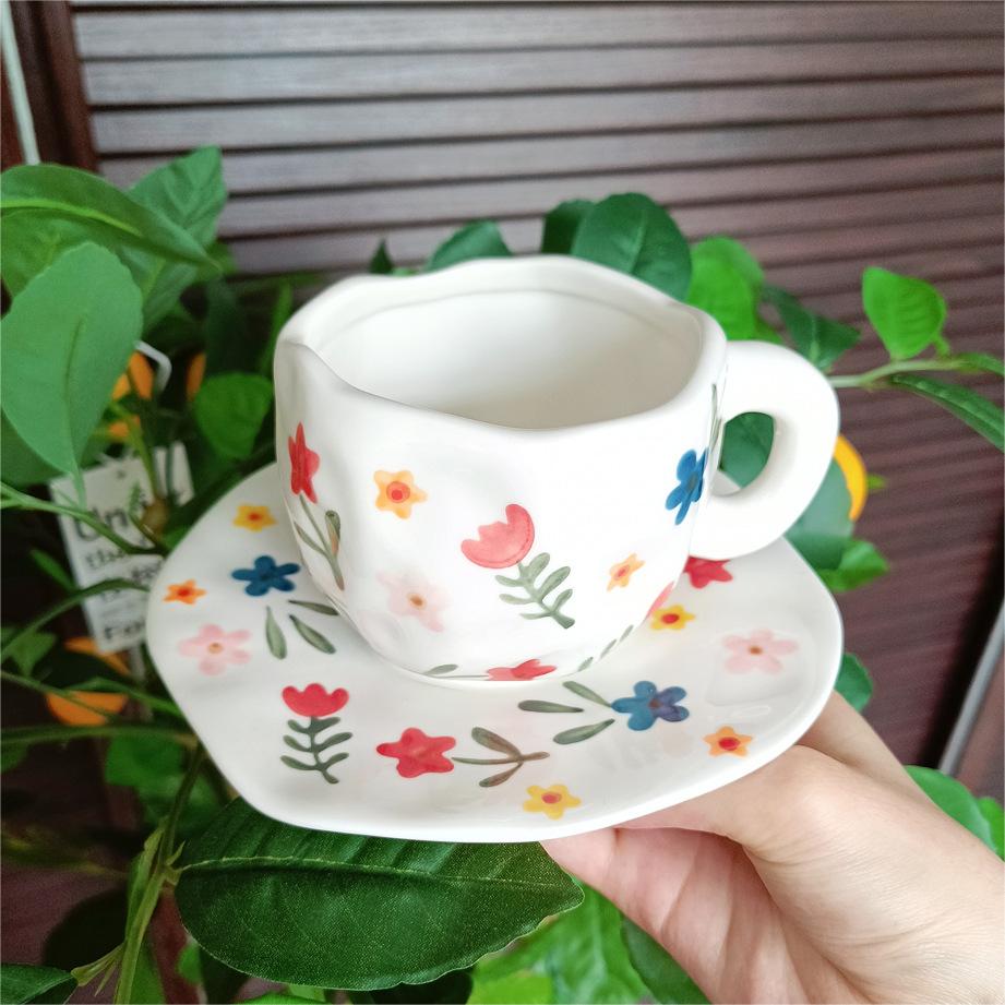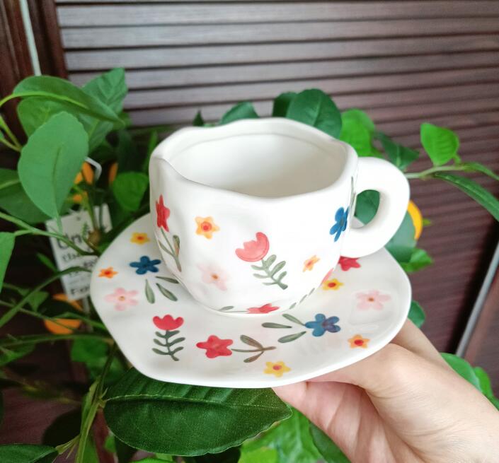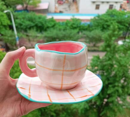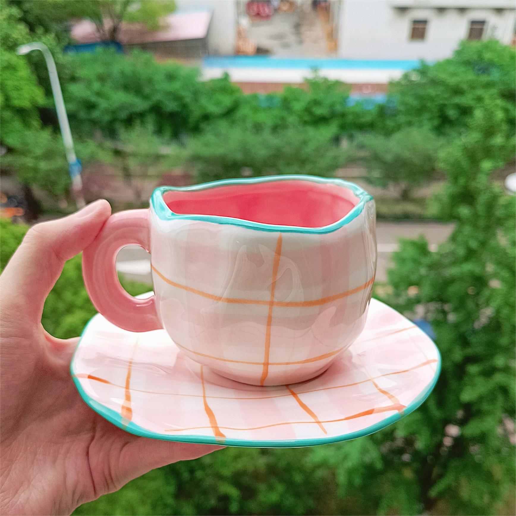 Color: white background floral cup and saucer suit, pink background floral cup and saucer suit, blue sky and white clouds, hand painted pink plaid, yellow background tulip, pink flower hand pinch Cup suit