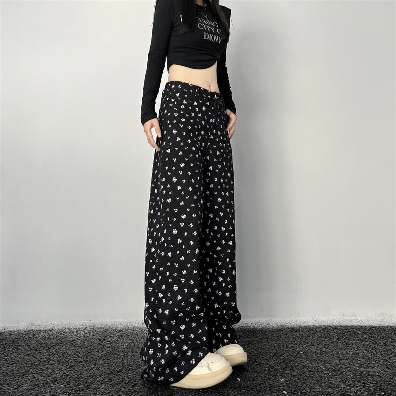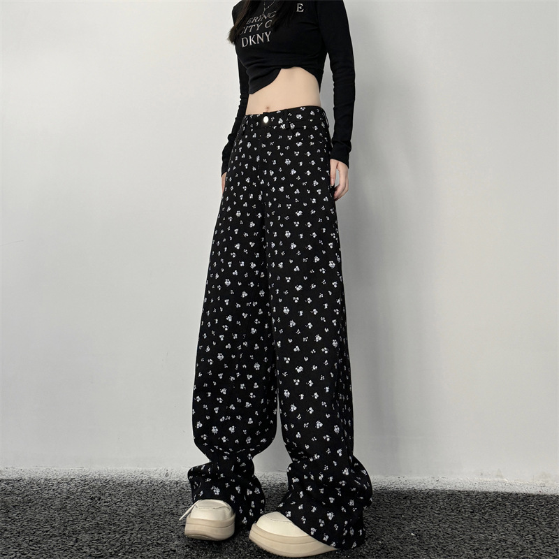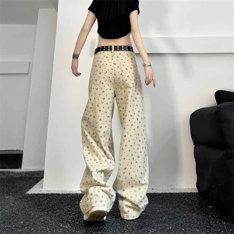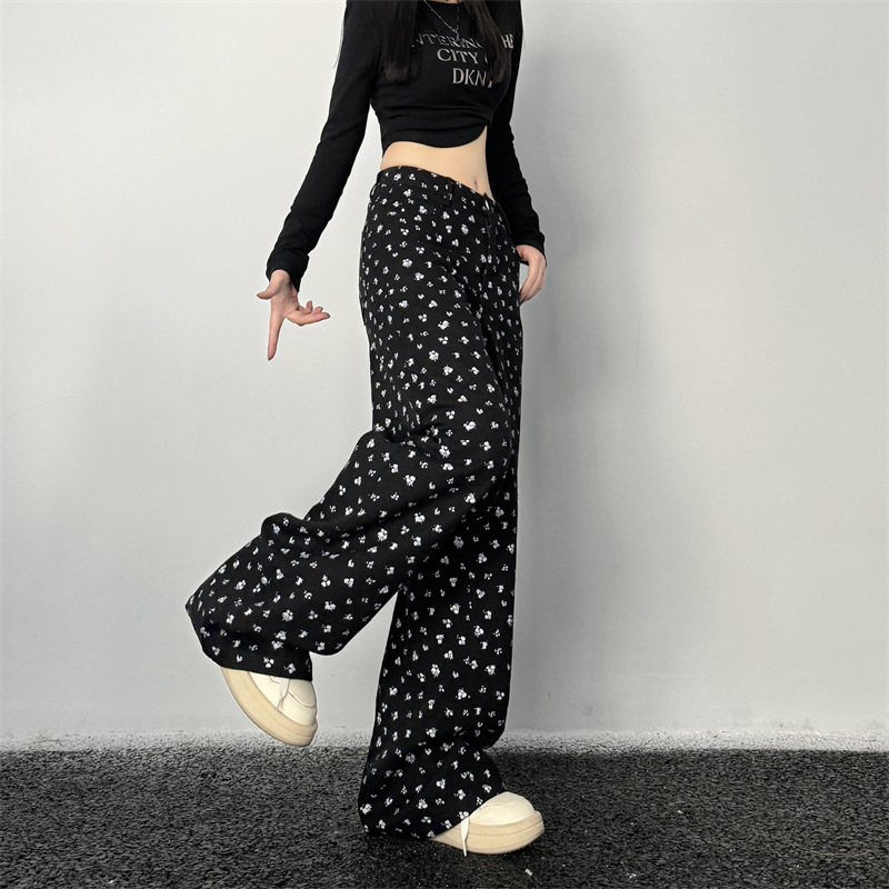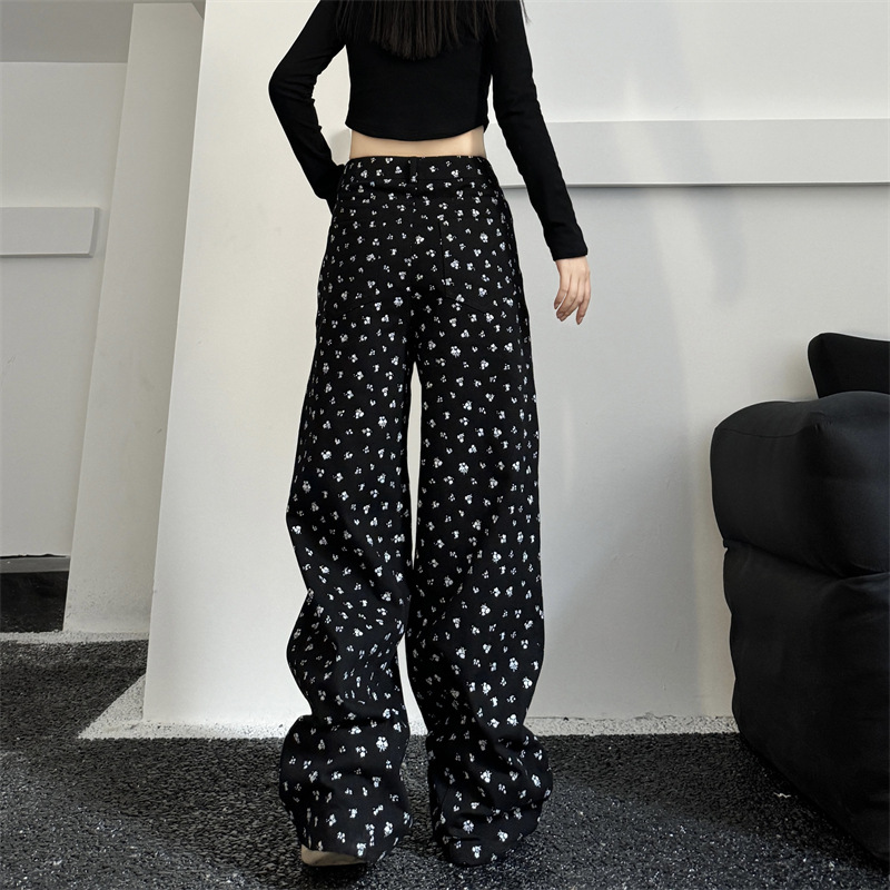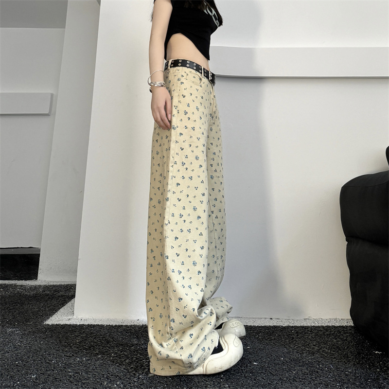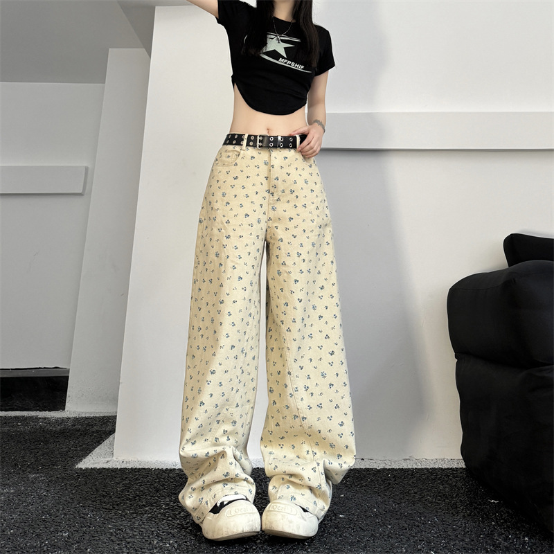 Vintage Floral High Waist Loose And Slimming Wide Leg Straight Jeans