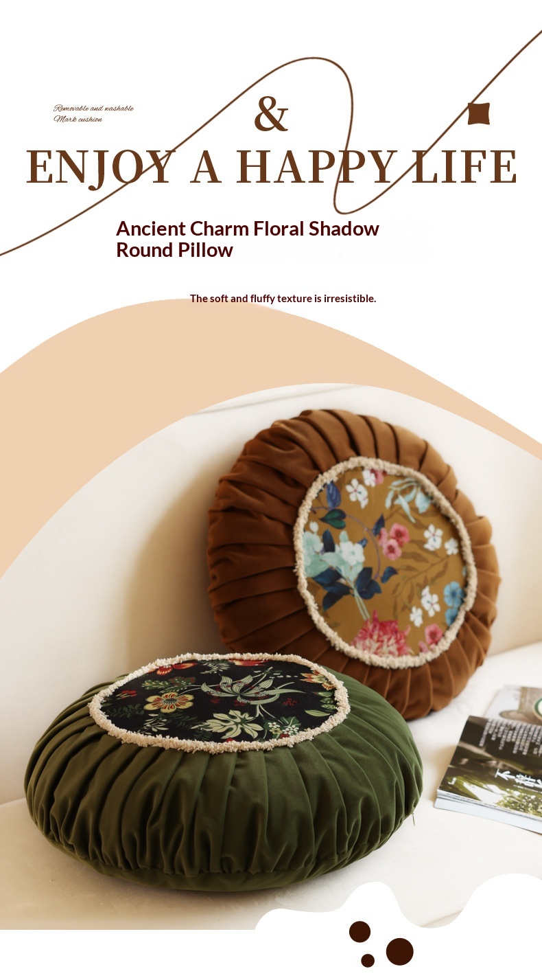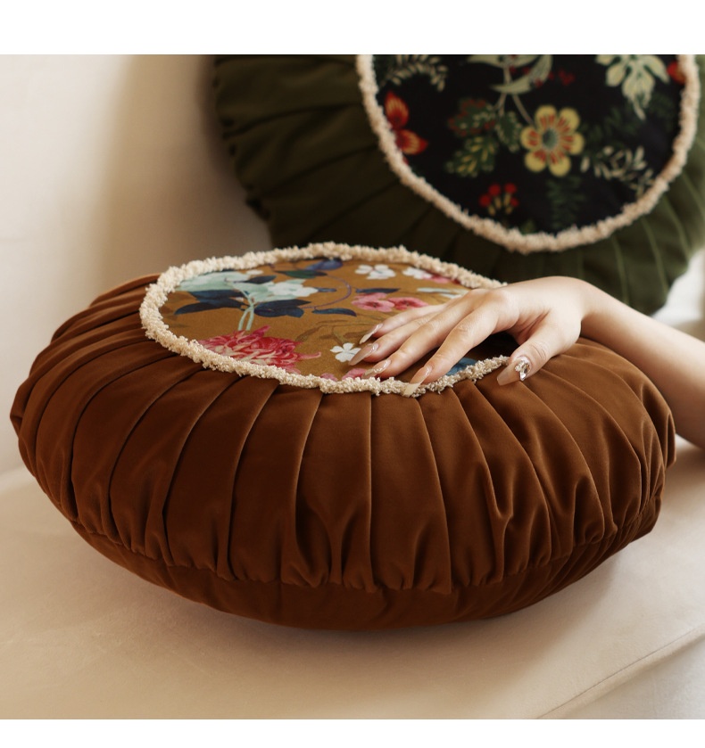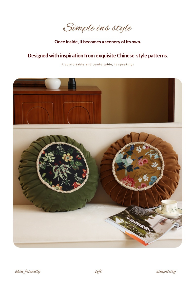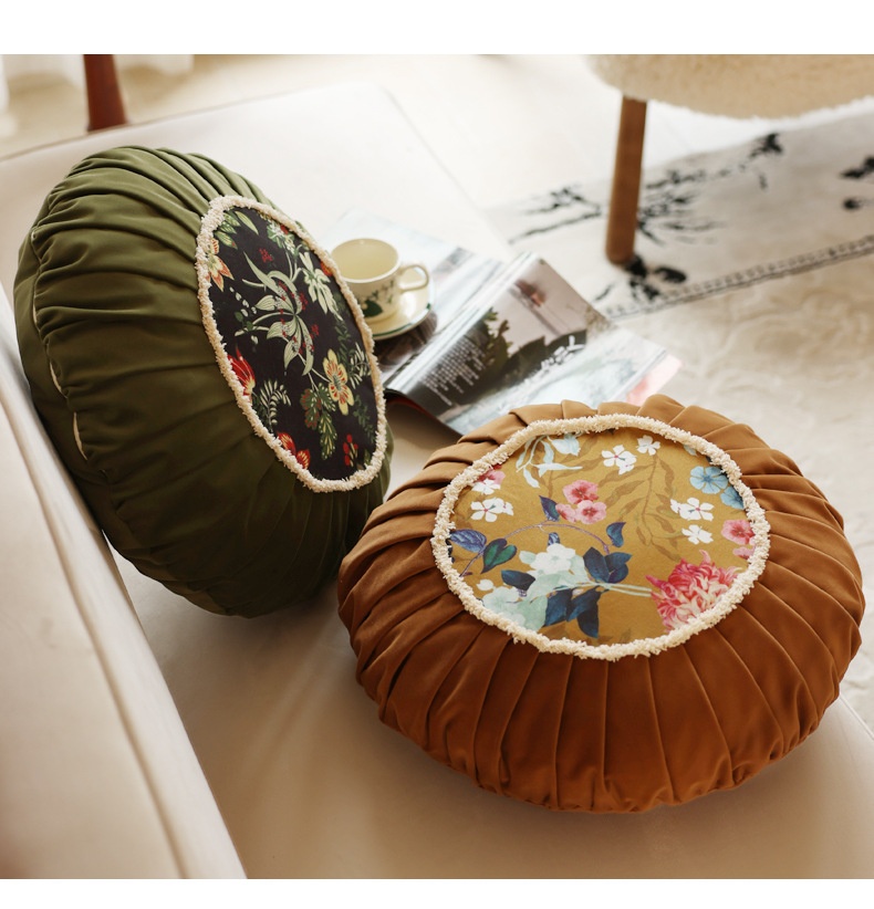 Color: Antique-style round seat cushion [with core], Floral Mirage round seat cushion [with core]