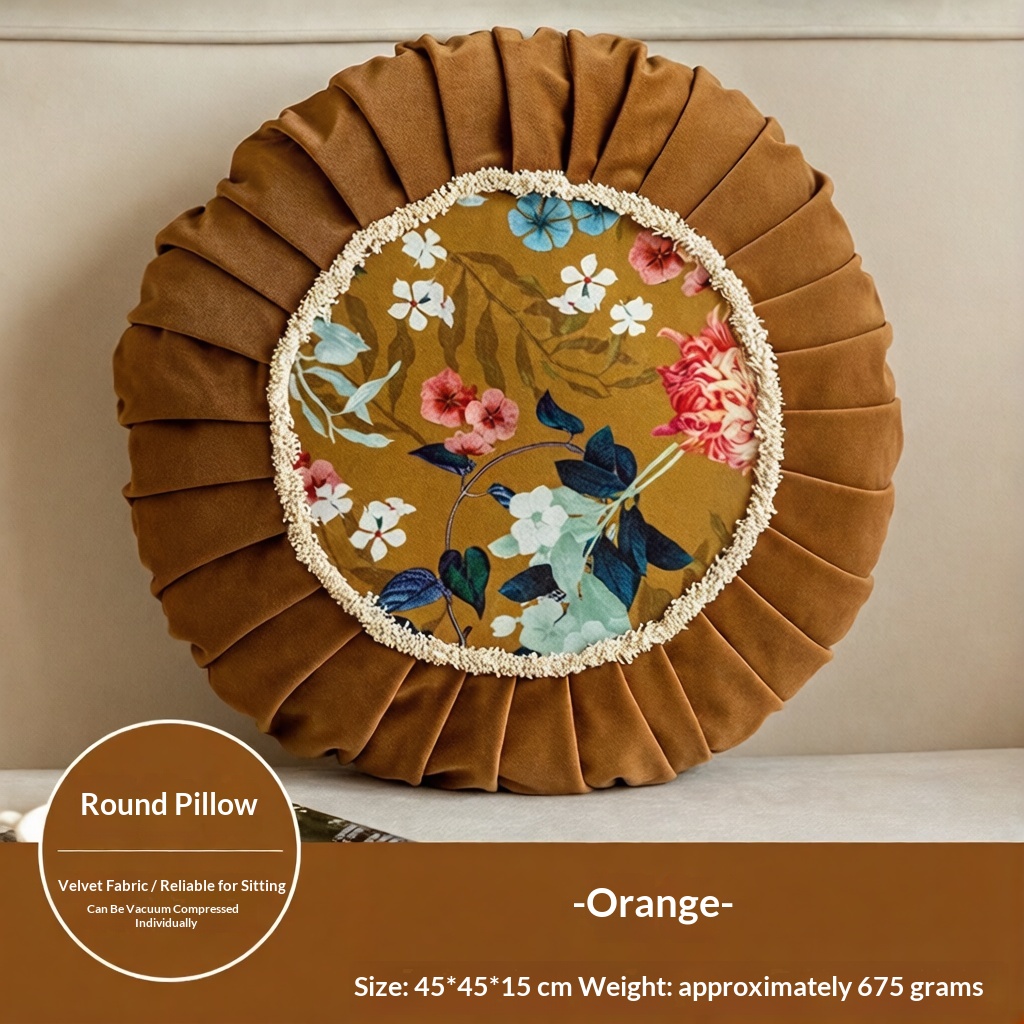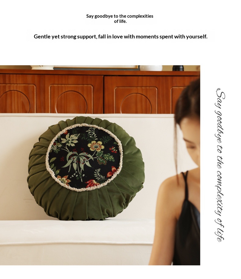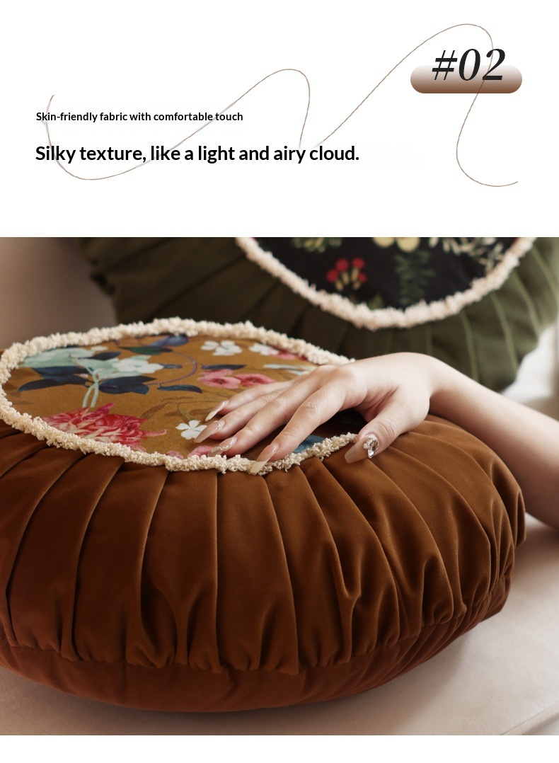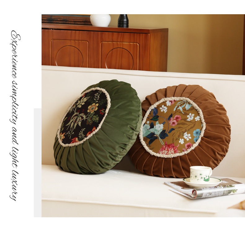 Color: Antique-style round seat cushion [with core], Floral Mirage round seat cushion [with core]