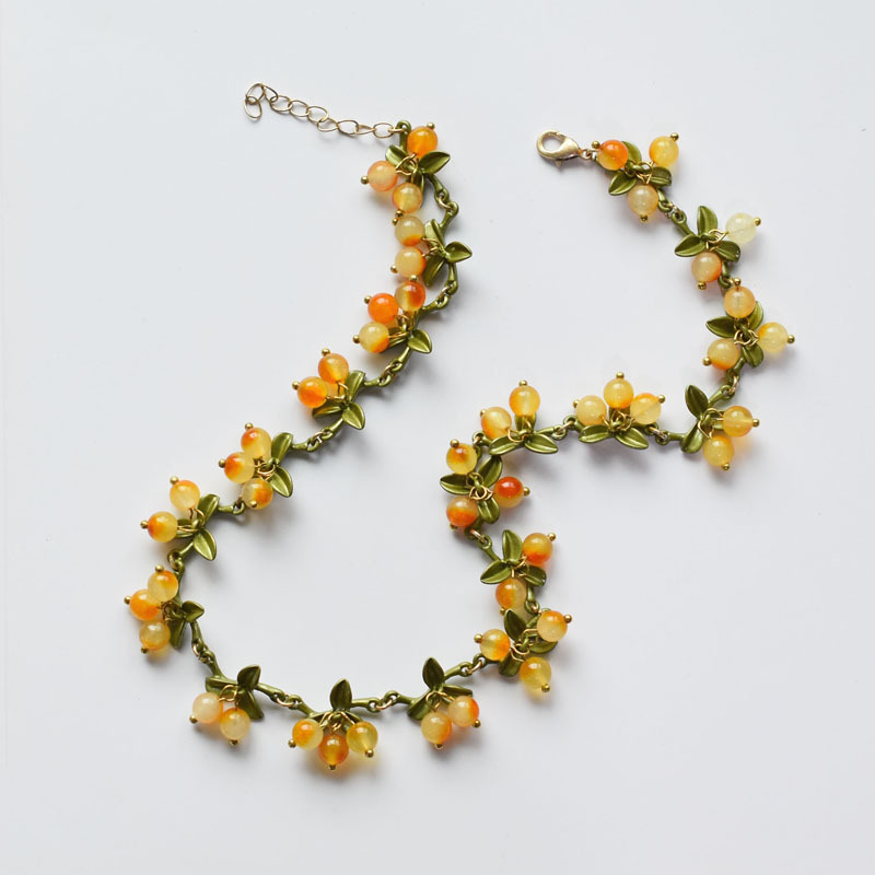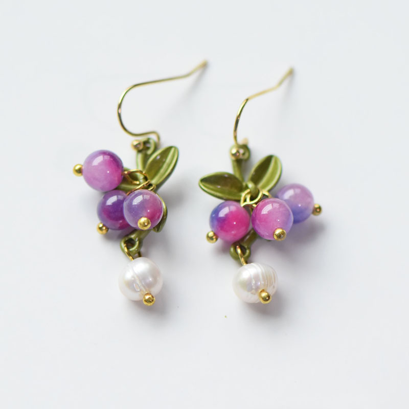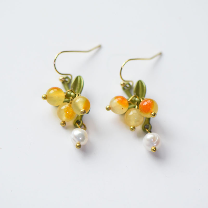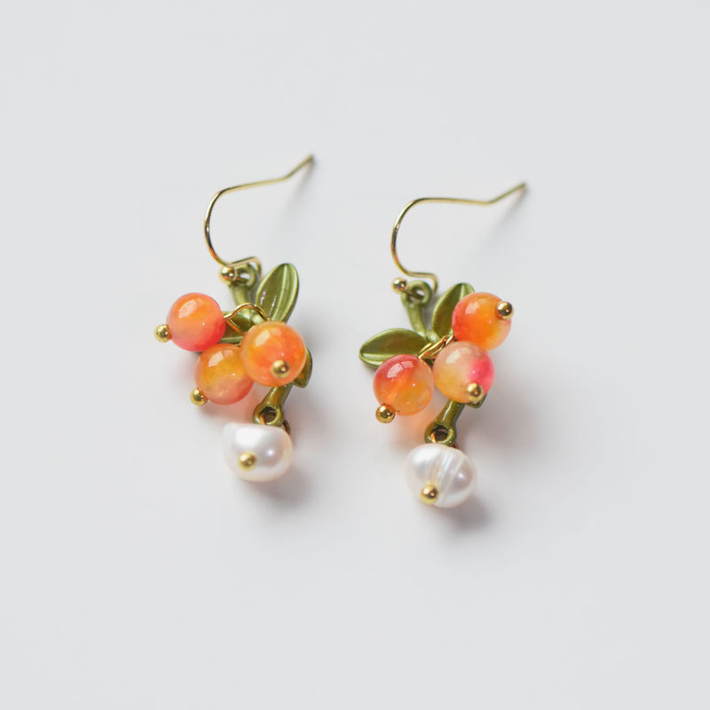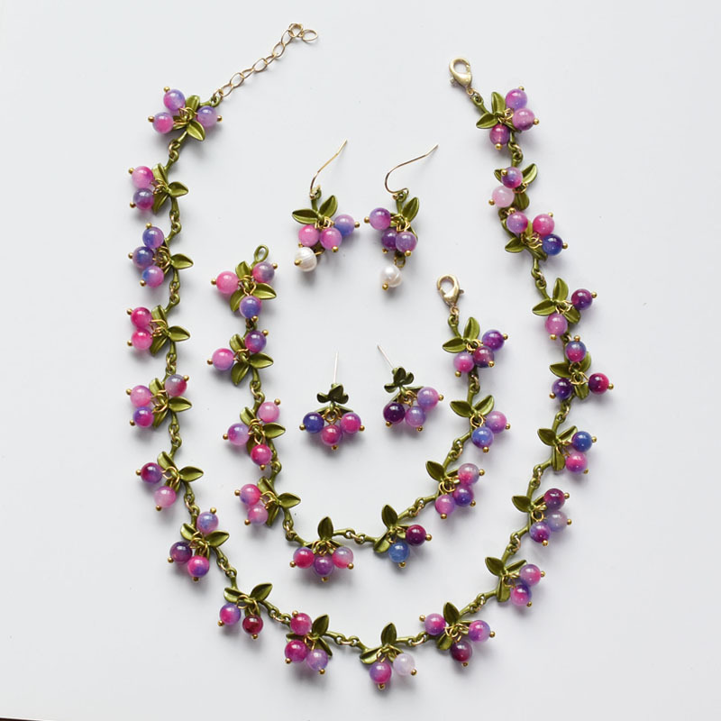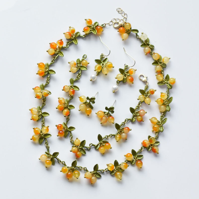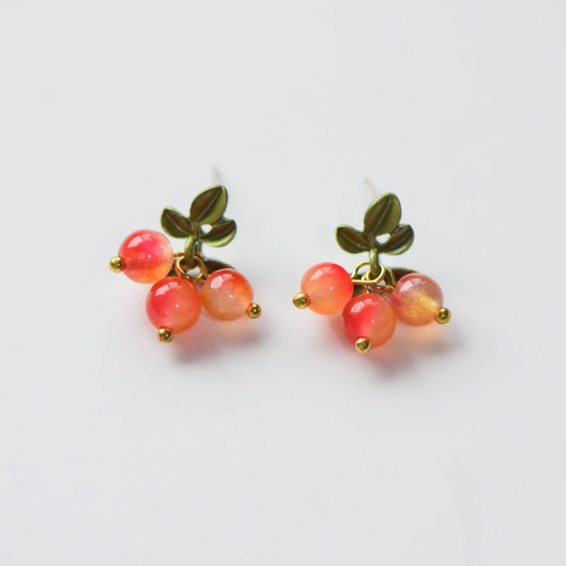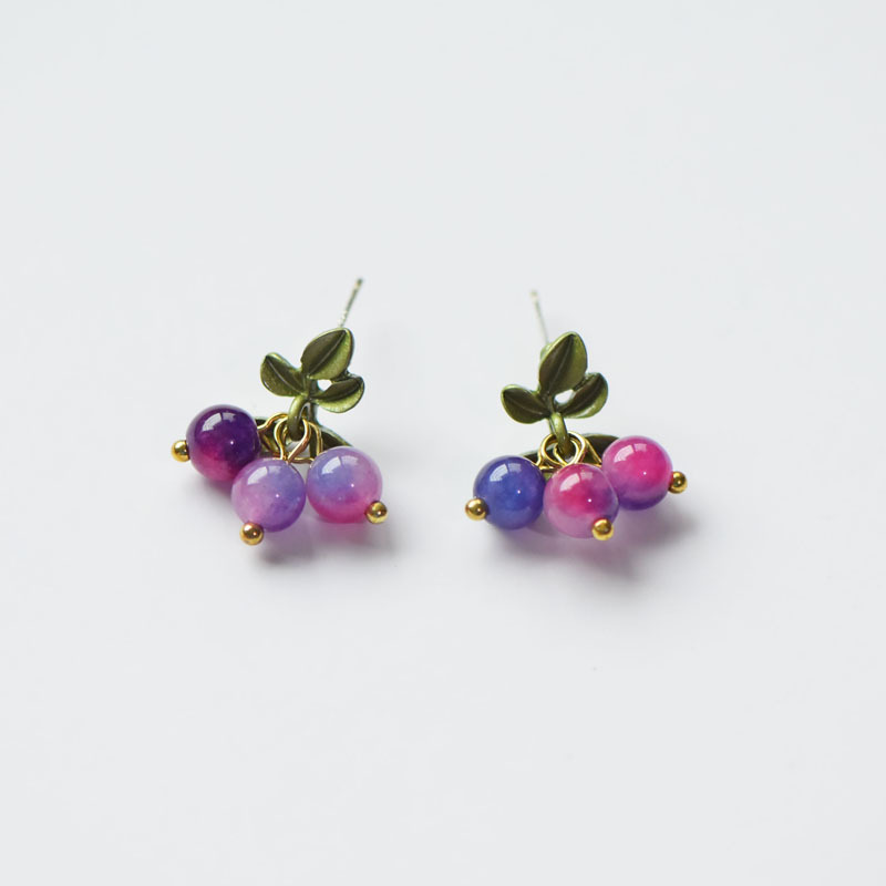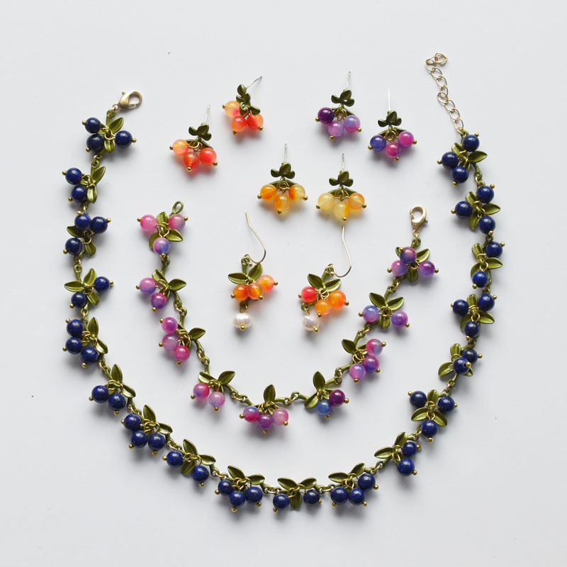 Colors: Blue Earhook, Orange Earhook, Peach Earhook, Violet Earhook, Blue Earnail Silver Needle, Orange Earnail Silver Needle, Peach Earnail Silver Needle, Violet Earnail Silver Needle, Blue Bracelet, Orange Bracelet, Peach Bracelet, Violet Bracelet, Blue Necklace, Orange Necklace, Peach Necklace, Violet Necklace, Green Fruit Bracelet, Red Bracelet