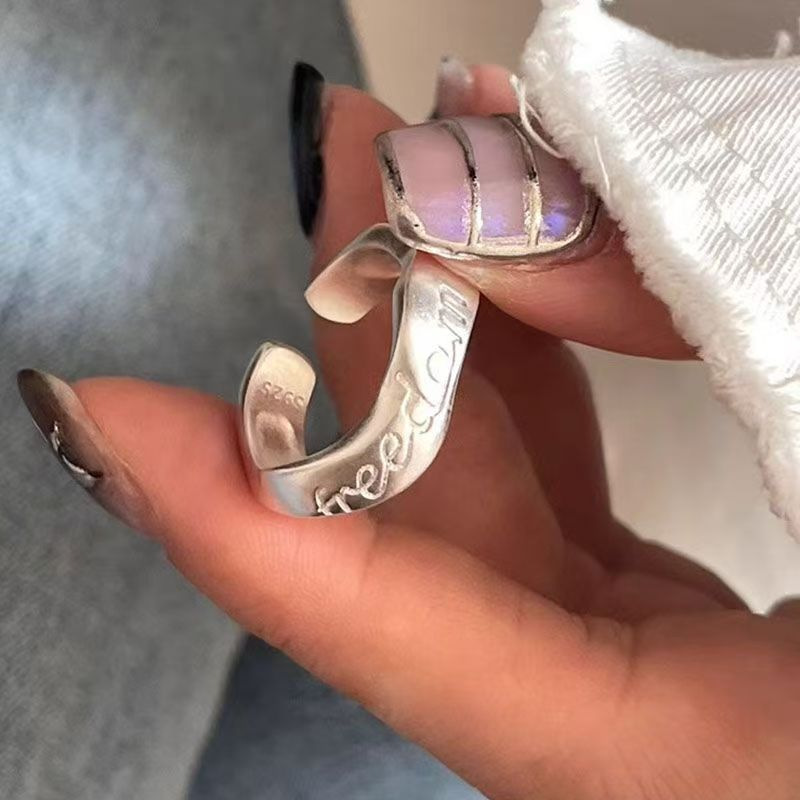 Vintage Freedom Letter Open Ring, Antique Metal Adjustable Band, Minimalist Cool Style Statement Ring For Women