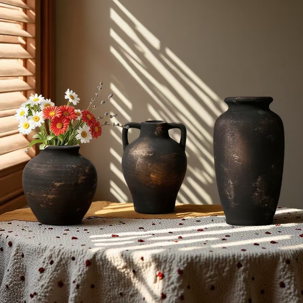 Unique Vintage Look】: This black ceramic vase features a one-of-a-kind vintage French countryside style that distinguishes it from ordinary decor.