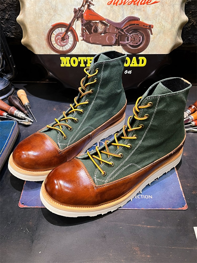 Bootleg material: canvas boots inner material: top layer pigskin leather