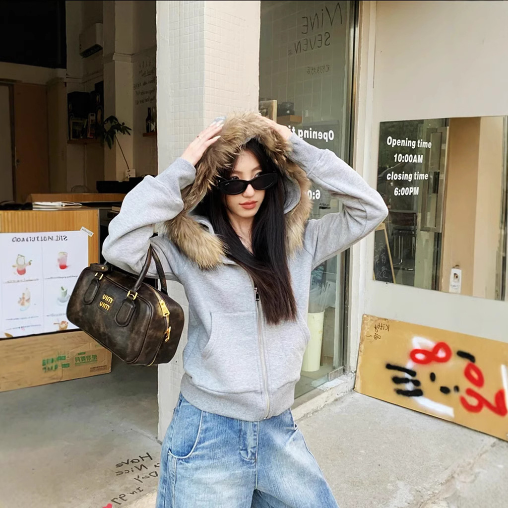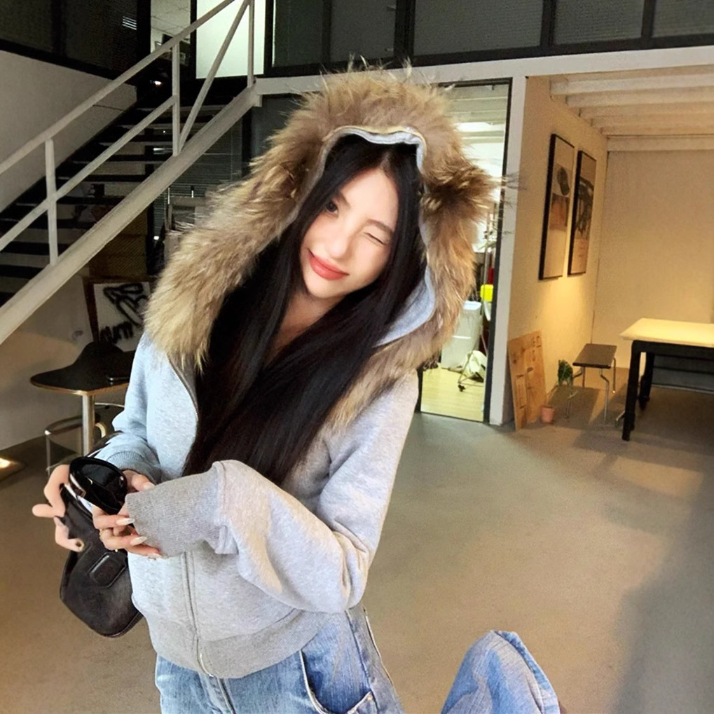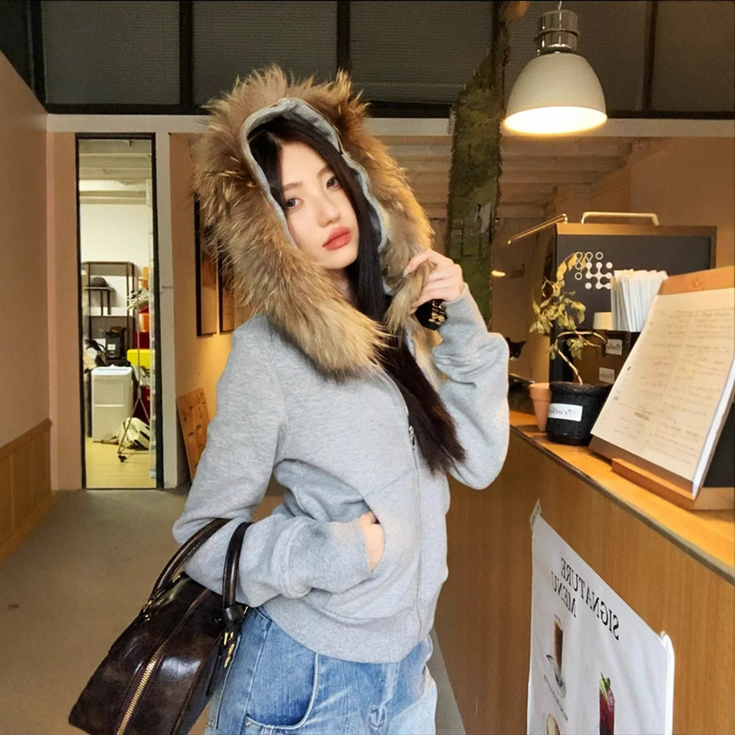 Color: gray [detachable fur collar]]