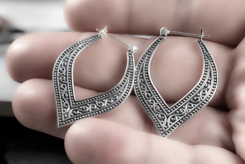 Vintage Ins Heart Love Heart Ethnic Style Carved Earrings