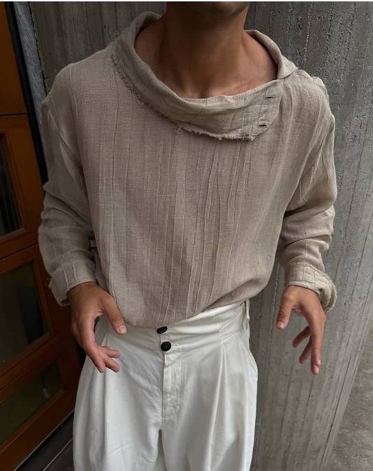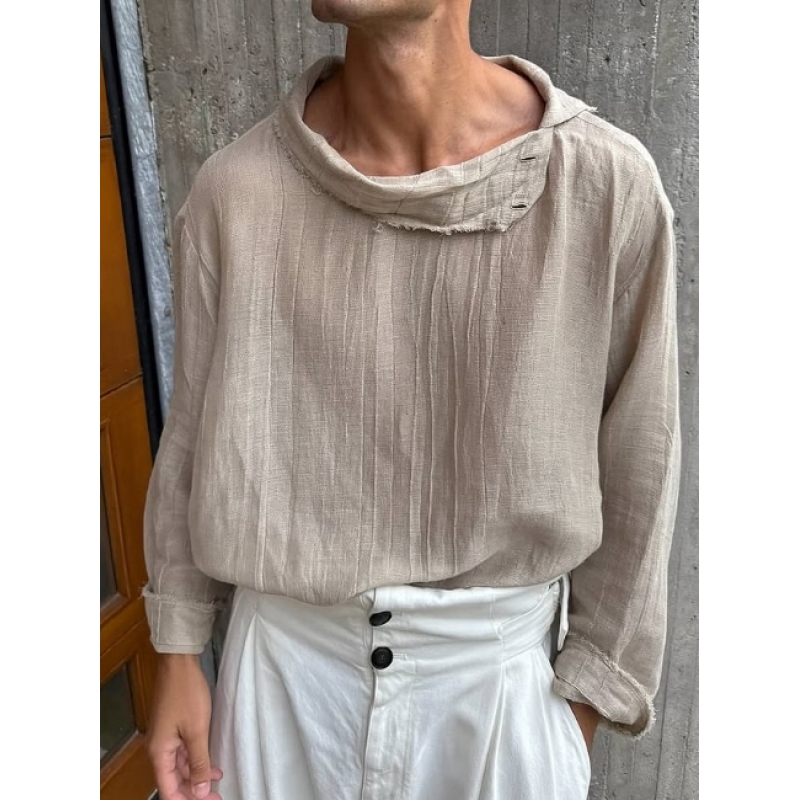 Vintage-Inspired Distressed Collar Shirt