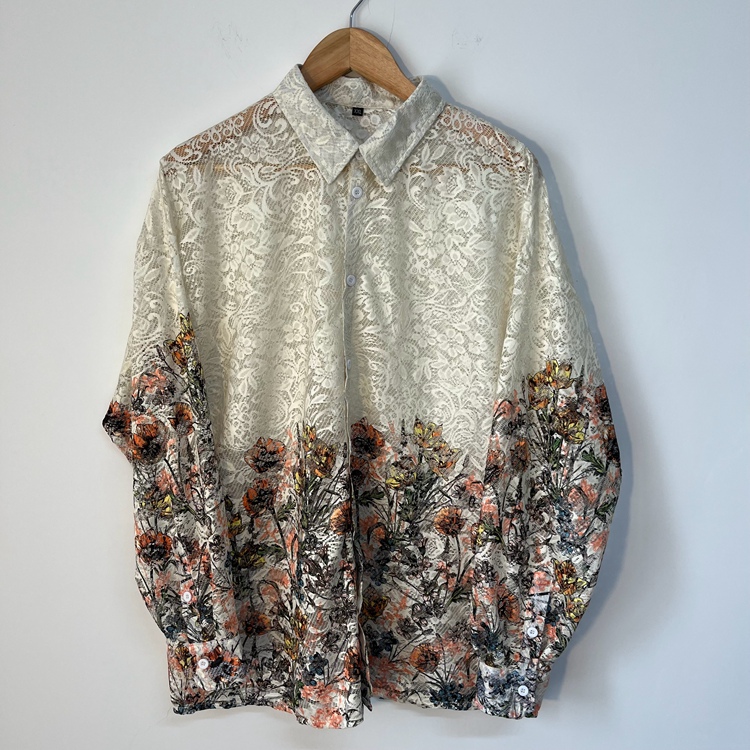 Vintage Lace Mesh Hollowed Out Men's Top