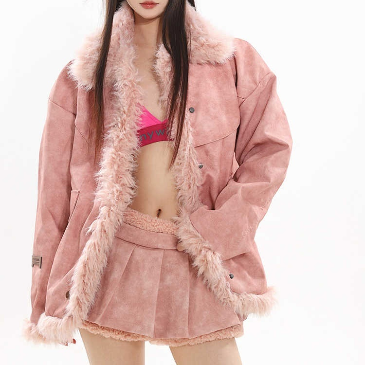 Color classification: brown coat, brown skirt, pink coat, pink skirt