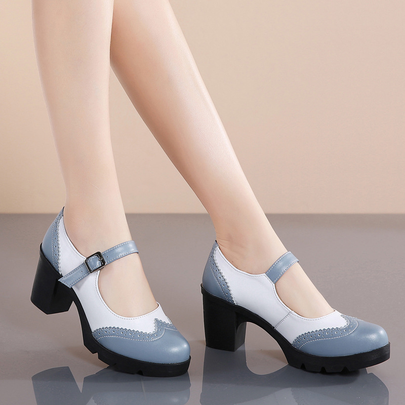 Vintage Mary Jane Casual Shoes Breathable Thick Heel Buckle