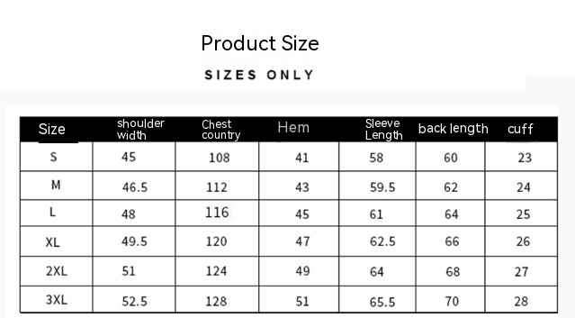 Size: M L XL 2XL 3XL
