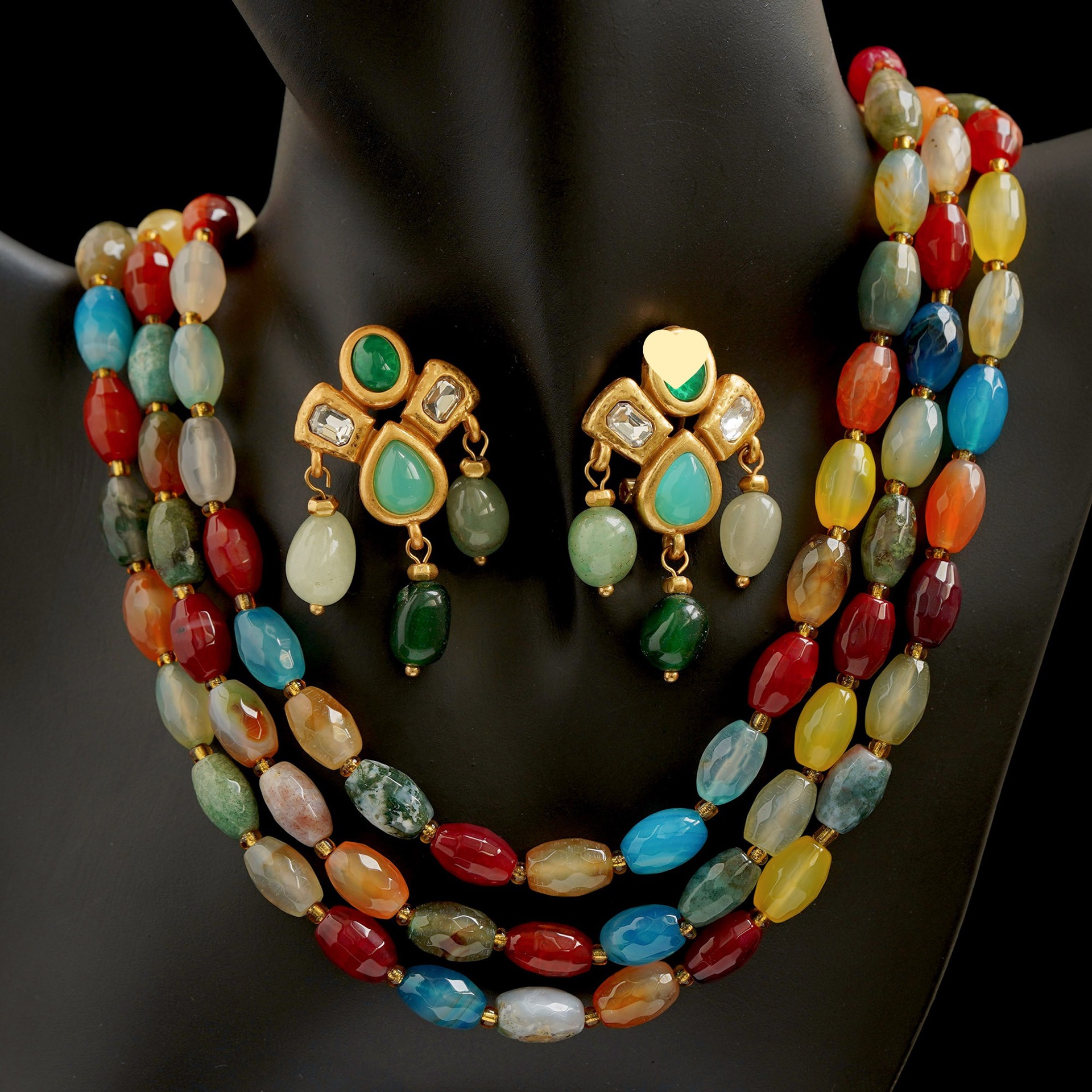 Color: Natural agate raw stone paired with 925 silver needles; surface gold-plated to preserve color; natural multi-layered colorful raw stone necklace, surface gold-plated to preserve color