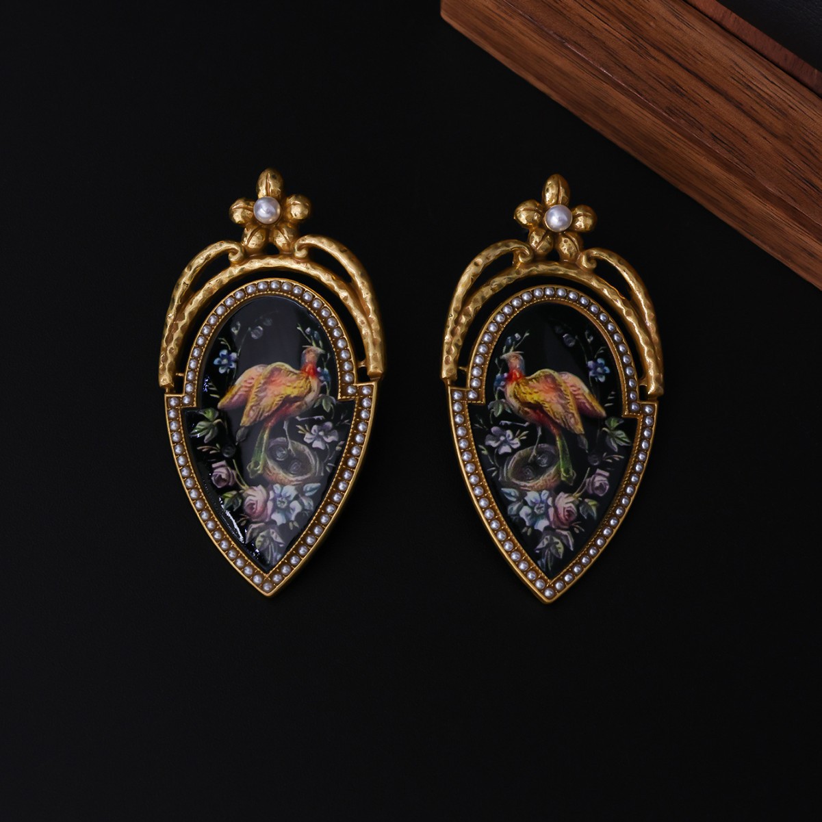 Material: Copper alloy plated with 18K gold, enamel painted