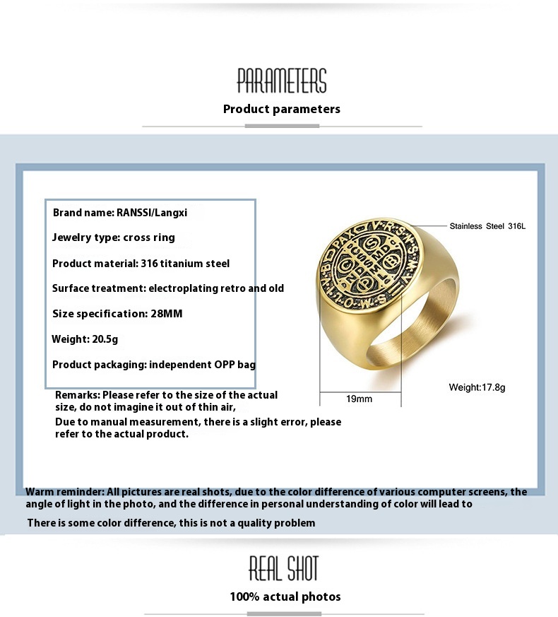 Product information:Type: Ring Treatment Process: Electroplating Material: titanium steel