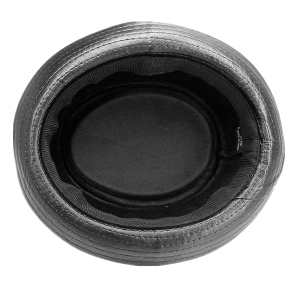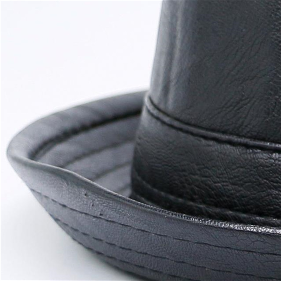 Material: PU leatherSeason: Spring, Summer, and AutumnBrim:Width: 4.7CMHat height: 12CMHat park: One size fits 56-58CM