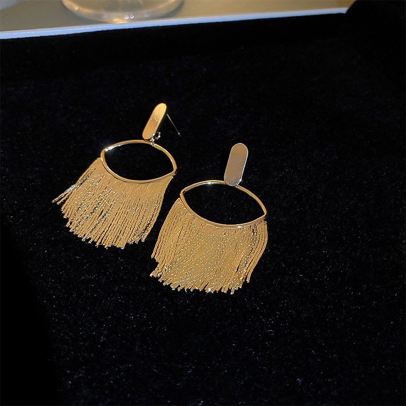 Vintage Round Flower Tassel Earrings, European American Retro Metallic Stud Earrings, Light Luxury Elegant Jewelry