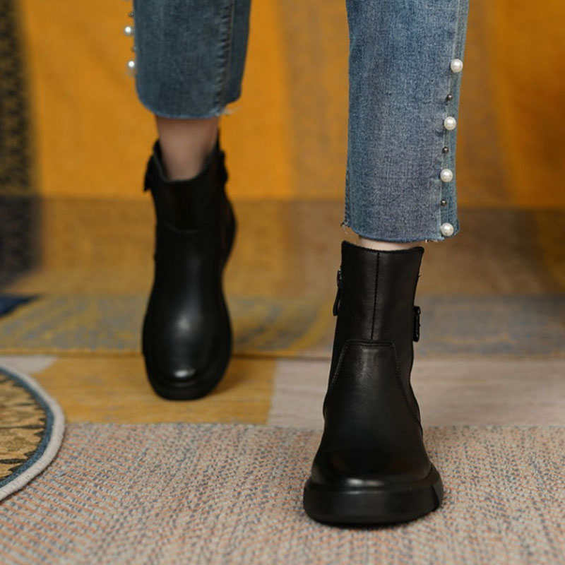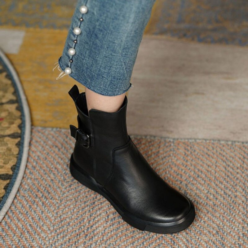 Vintage Shoes Women Ankle Boots With Buckle Side Zipper