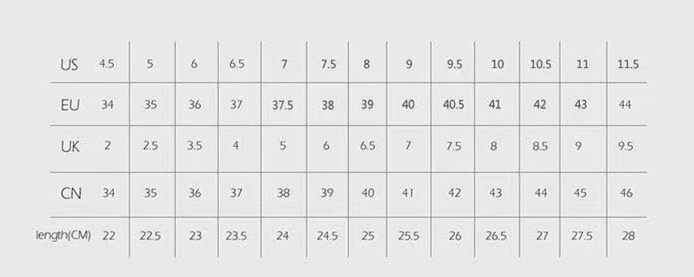 Size: 34, 35, 36, 37, 38, 39, 40, 41, 42, 43, 44, 45