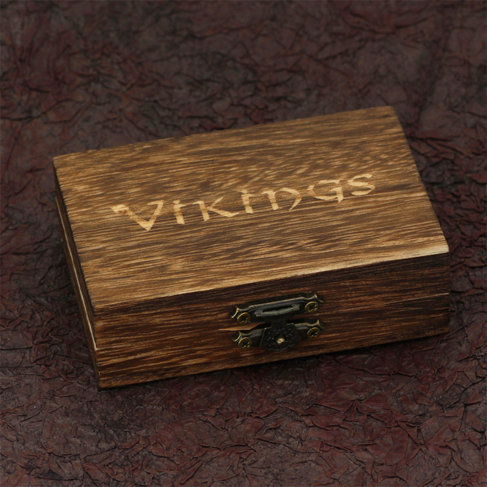 Material: natural wooden box + PU leather luxury Viking jewelry packaging