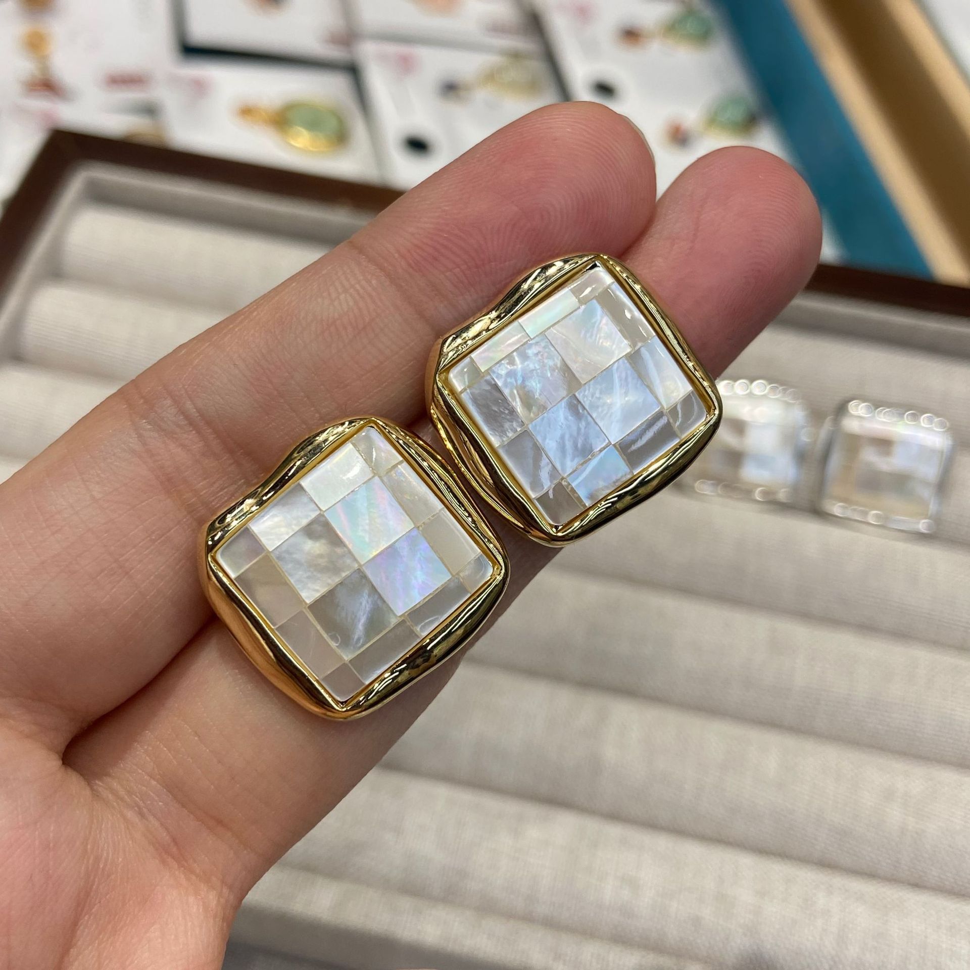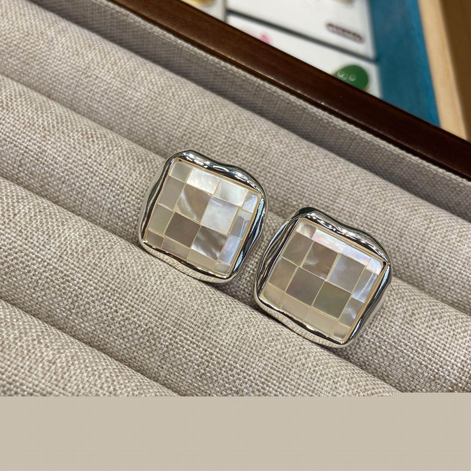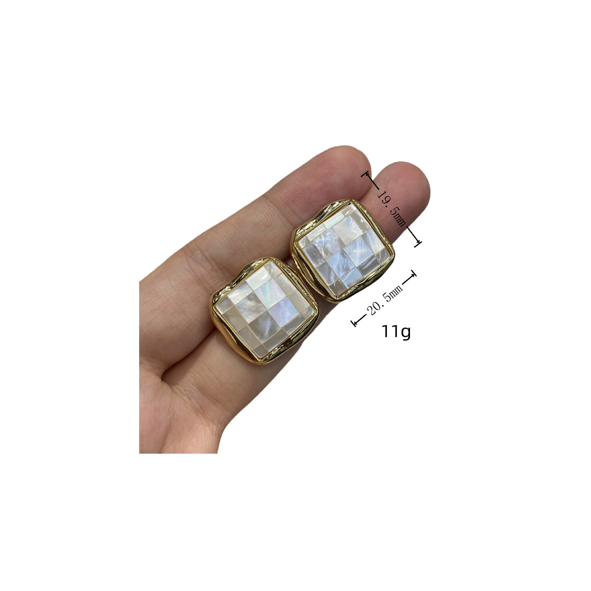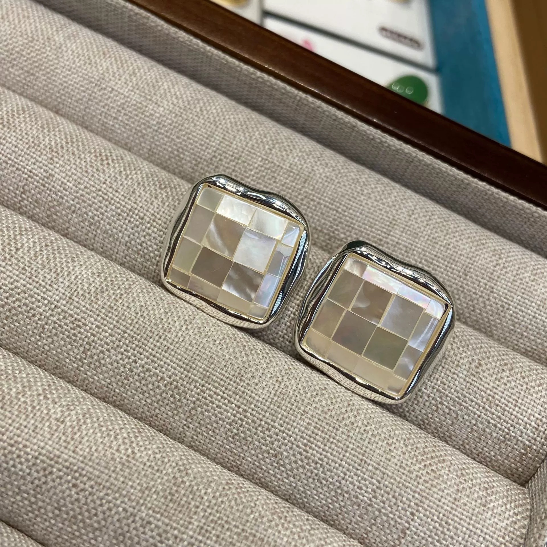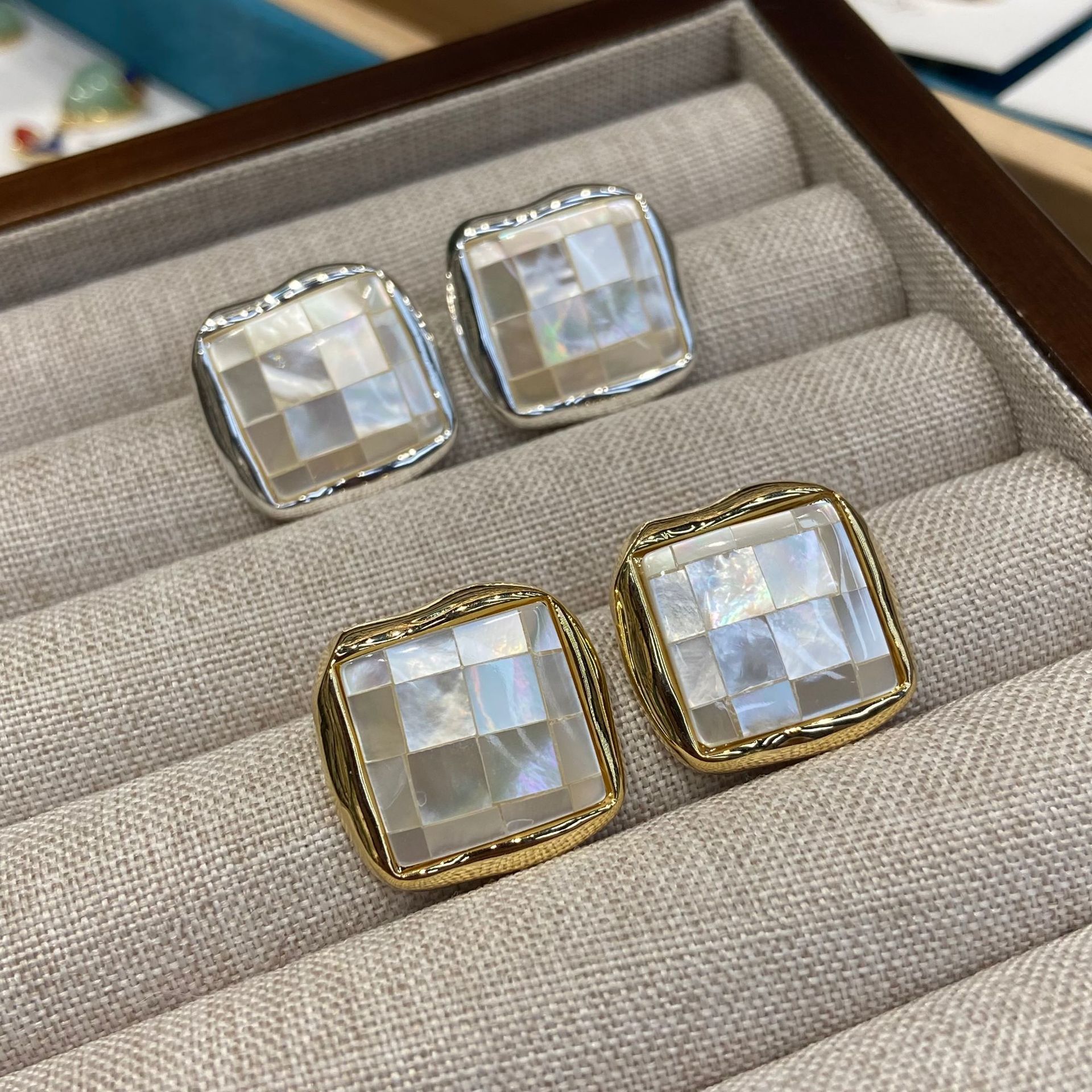 Color: square mosaic stud earrings-Silver, square mosaic stud earrings-Gold
