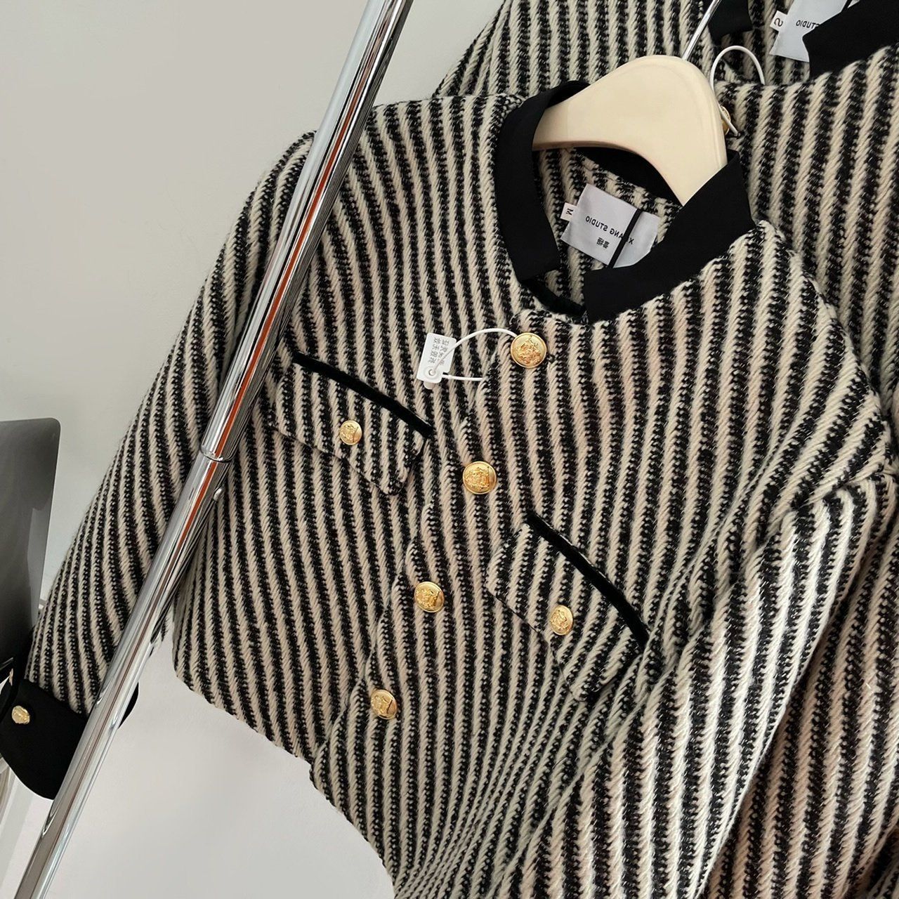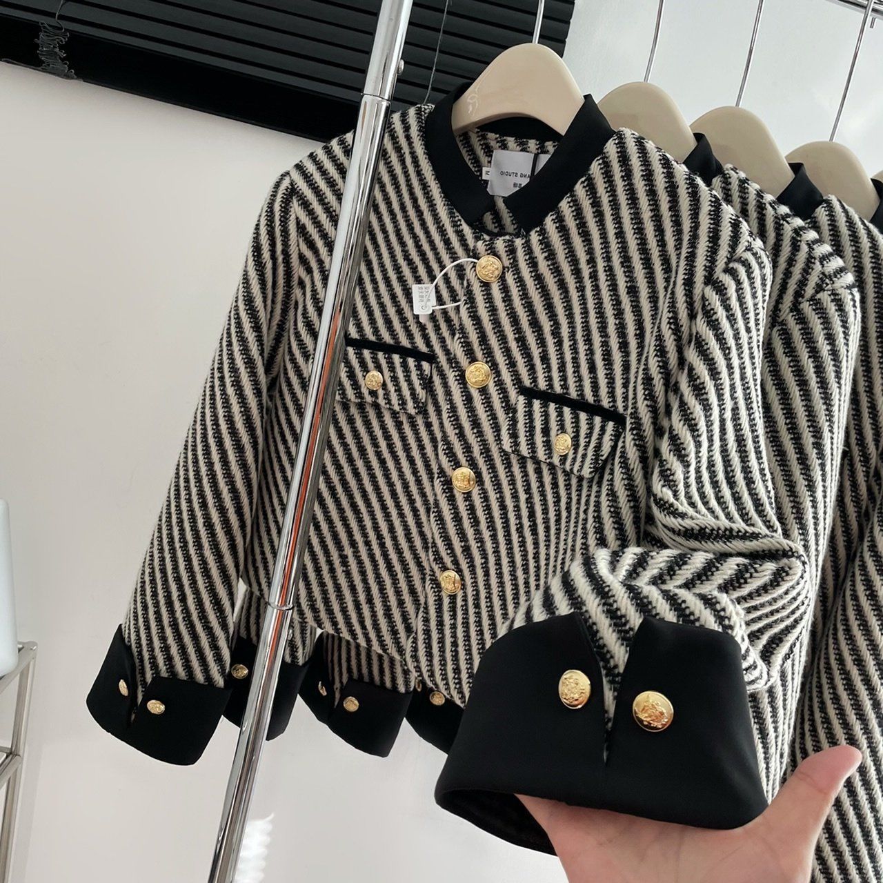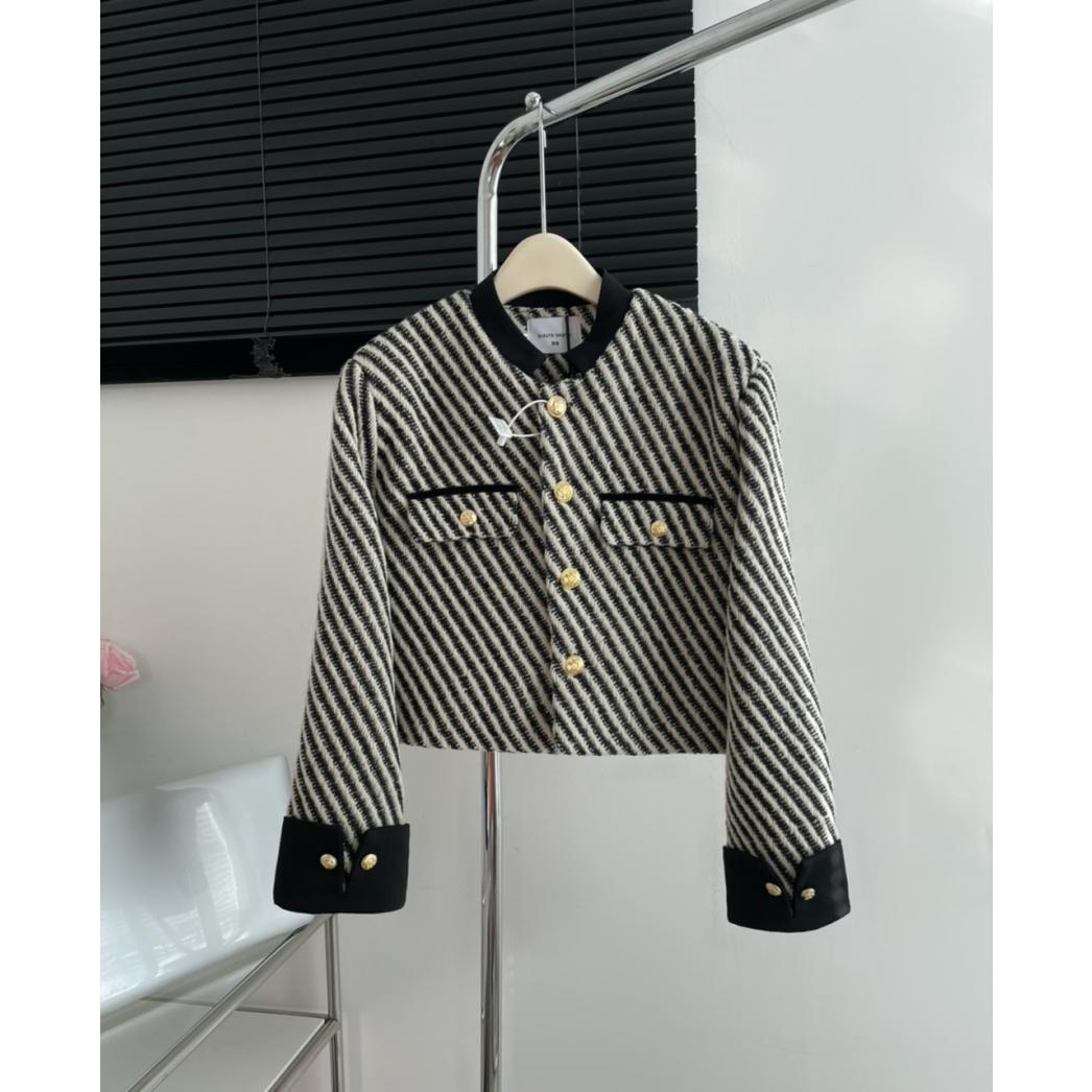 Vintage Stripe Classic Style Slimming Niche Stitching Design Short Coat