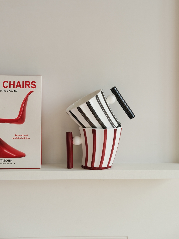 Color classification: striped ceramic cup vase red striped ceramic cup one black and one red ceramic cup red striped cup two sets of striped ceramic cups 2 sets of vases + 2 cups of striped hand-held cups pure white hand-held cups hand-held cups two one Group