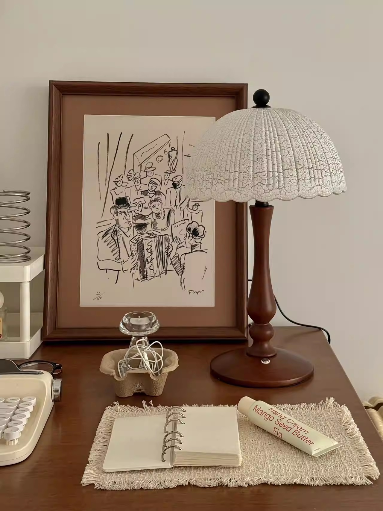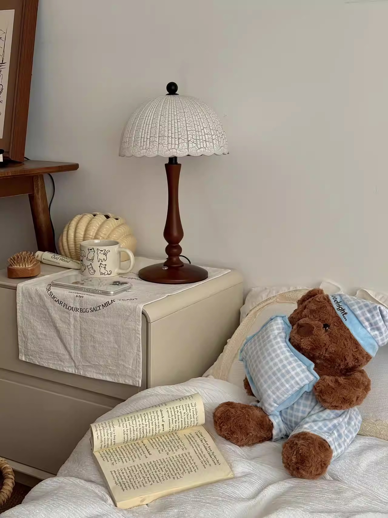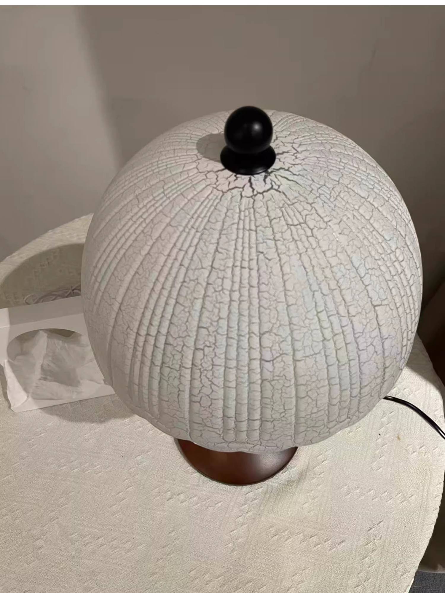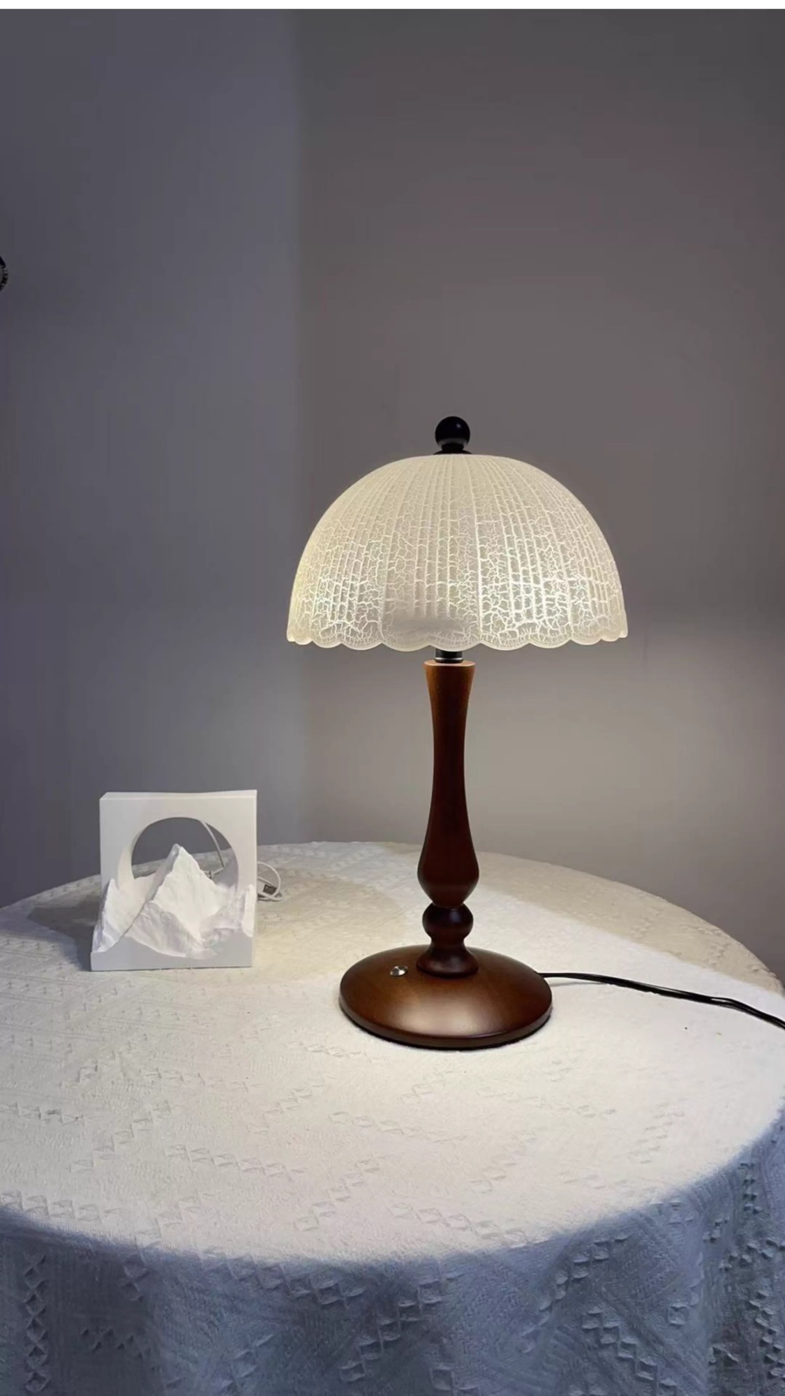 Color Options: Ice-crack Pattern Lampshade Solid Wood Table Lamp – D26*H43cm – Warm Light; Ice-crack Pattern Lampshade Solid Wood Table Lamp – D26*H43cm – Three-Color Dimming