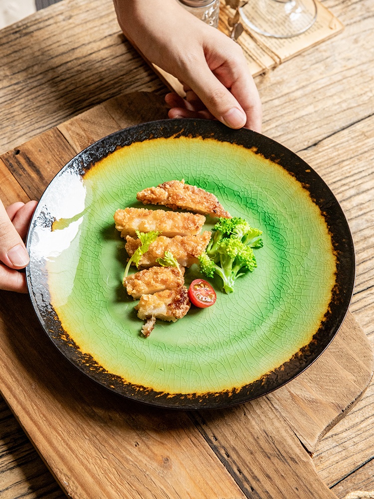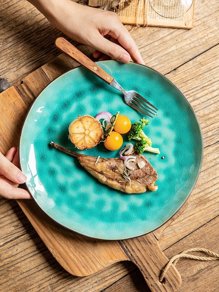 Color classification: 10.5-inch cracked glaze irregular flat plate-Bibo blue 9-inch cracked glaze flat plate-ice kiln blue 11-inch cracked glaze irregular flat plate-Blue Dream 8-inch cracked glaze drip plate-Ji Yuhuang