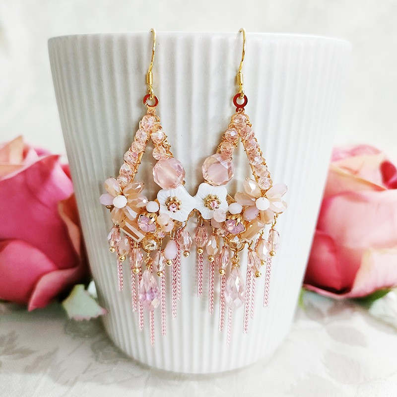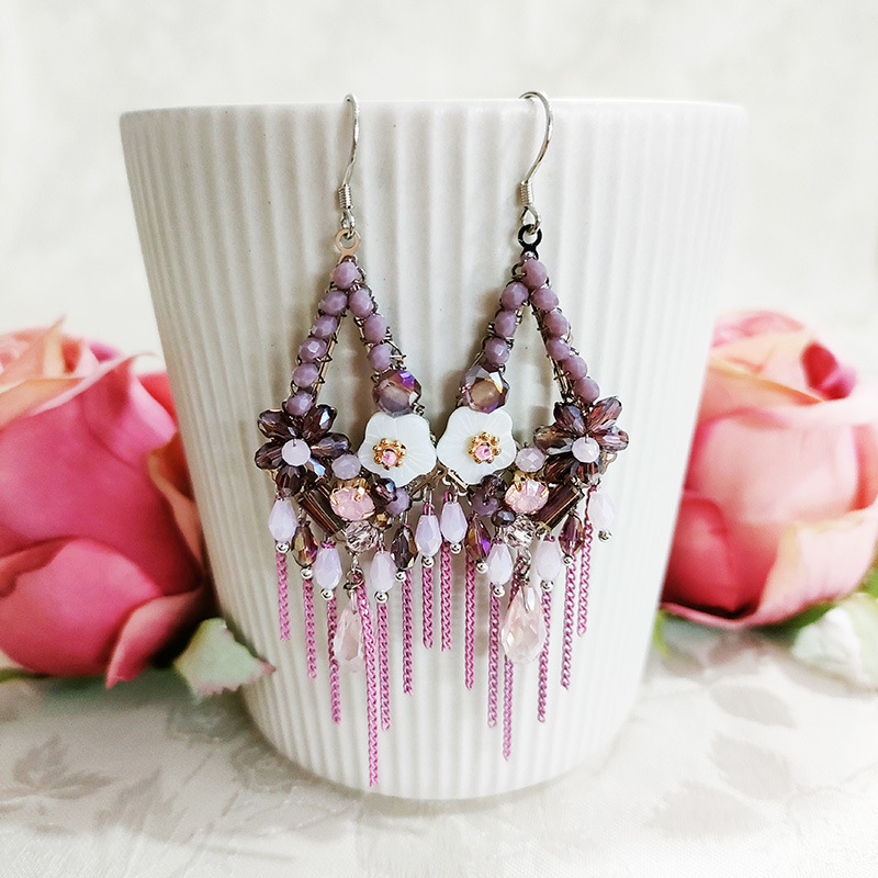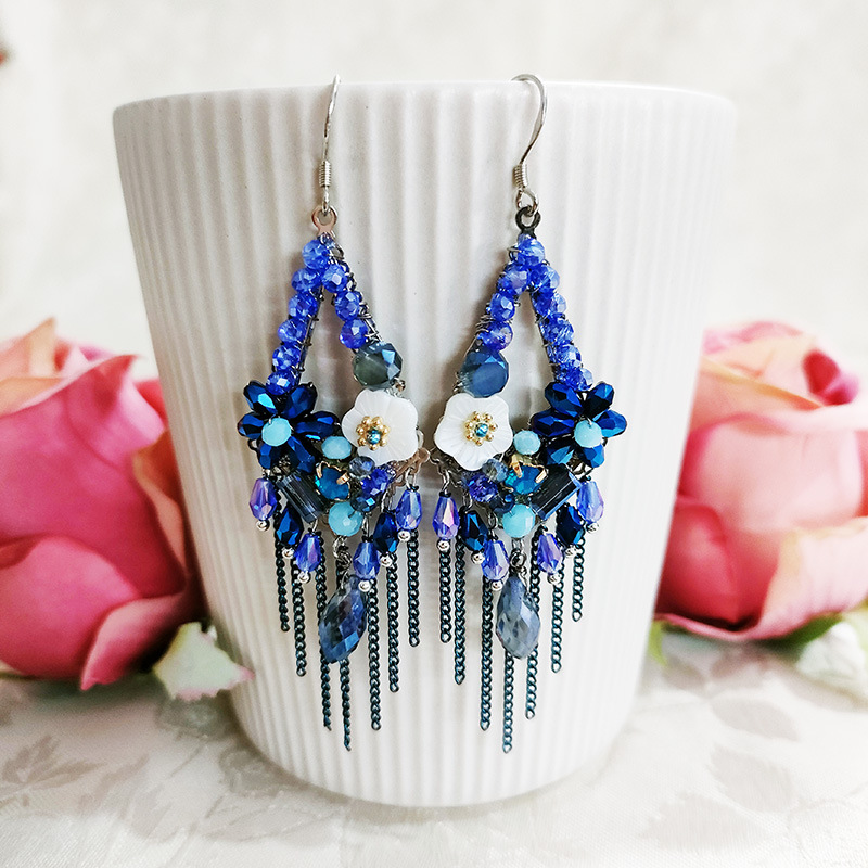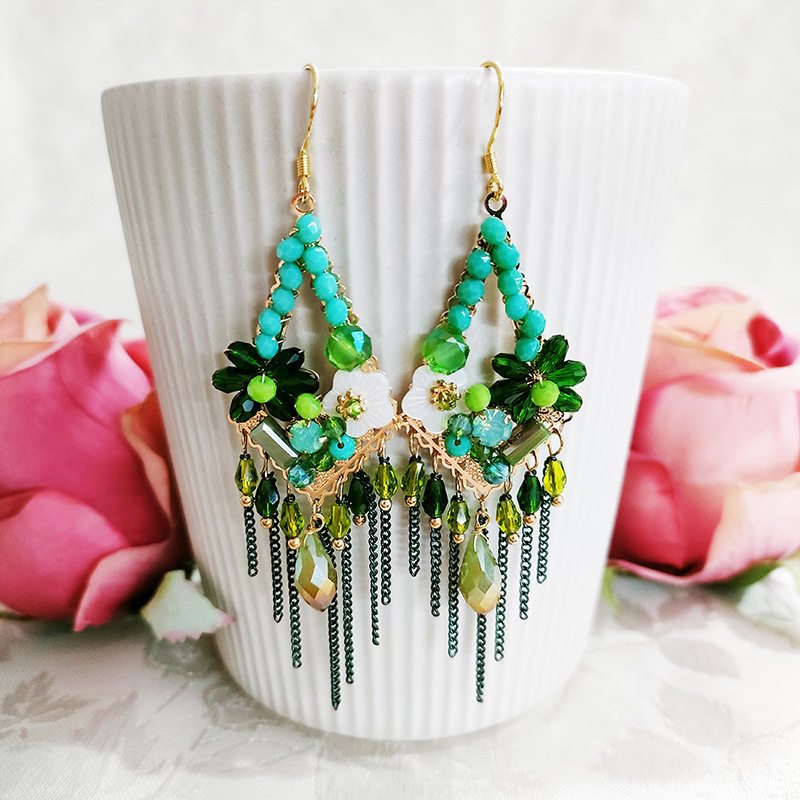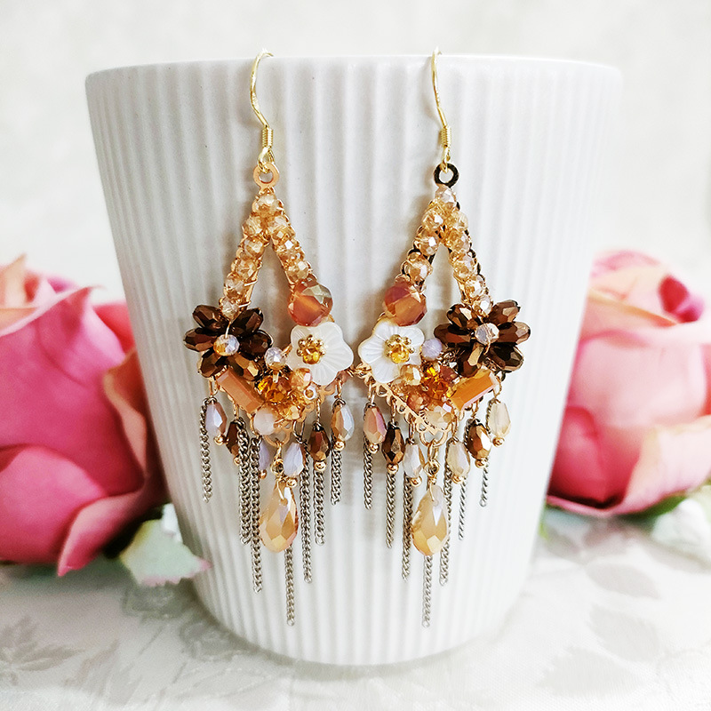 Vintage Tassel Shell Flower Crystal Earrings