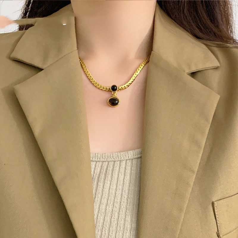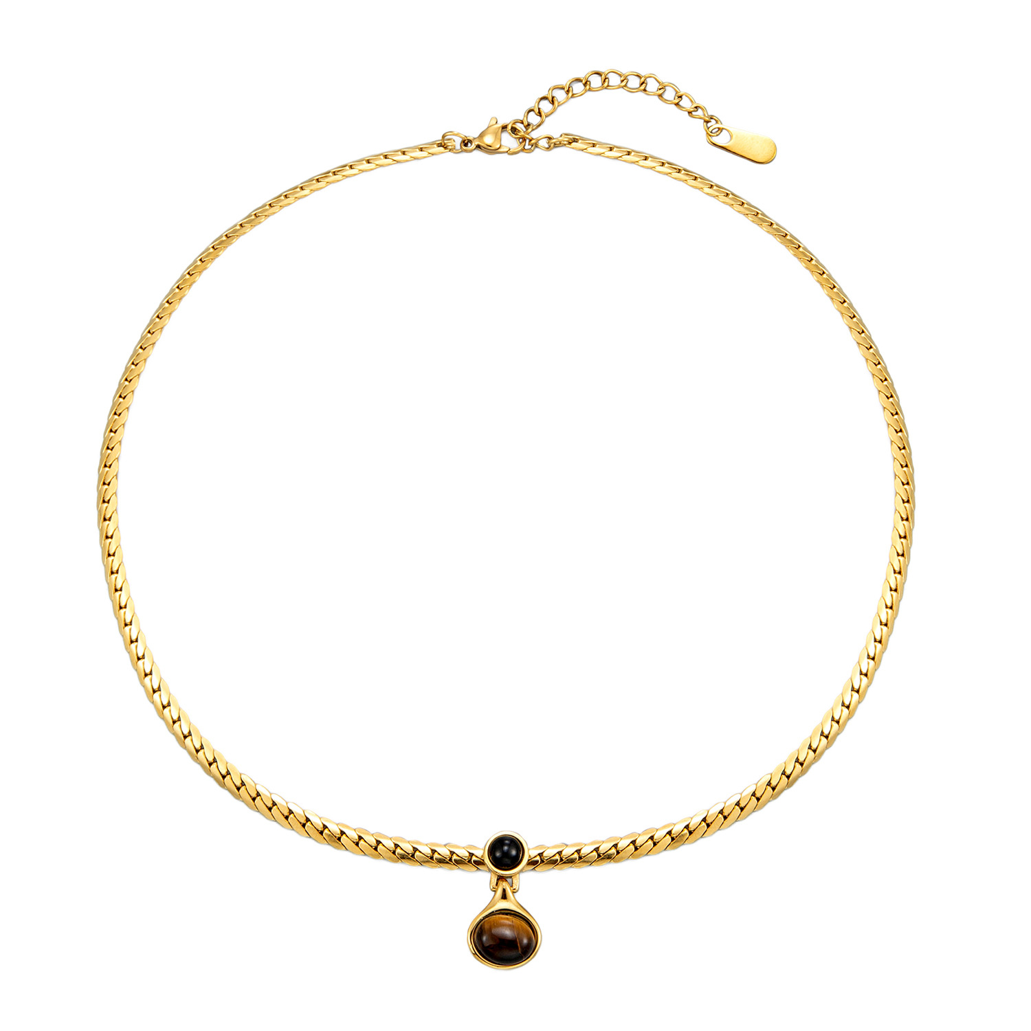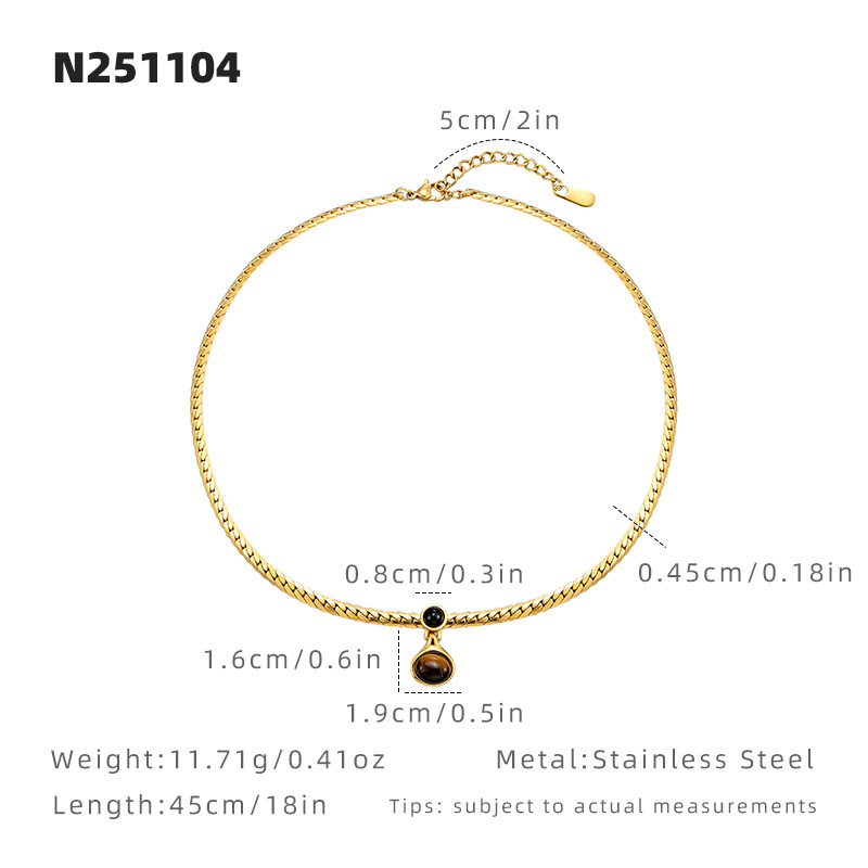 Color: Tiger Eye Pendant Necklace, Steel Color
