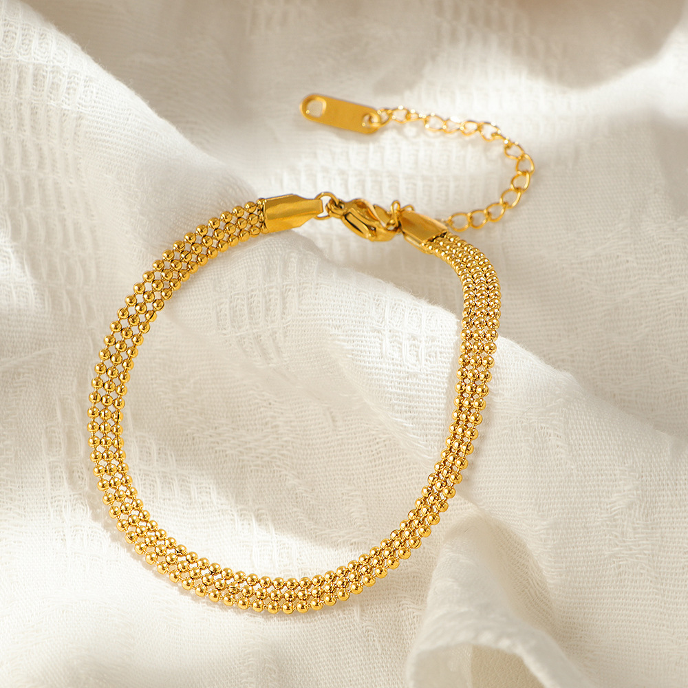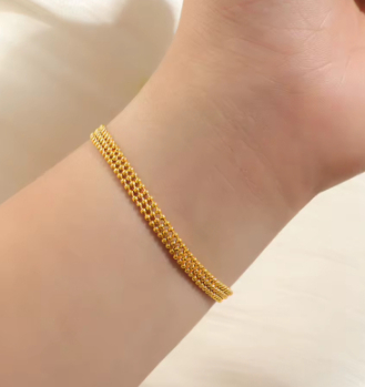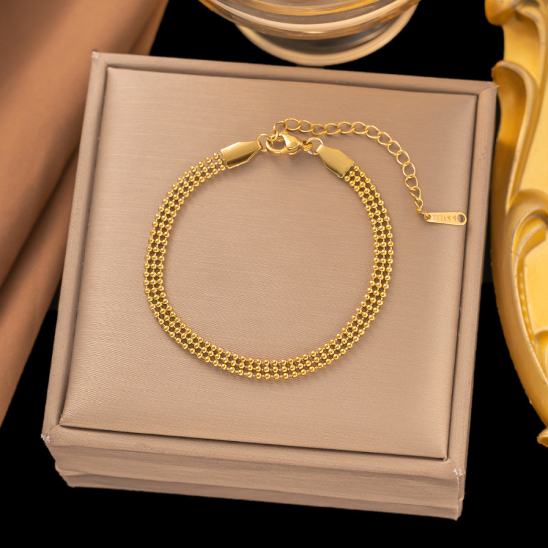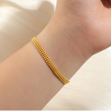 Color: [SLE2200] Three-Layer Beaded Bracelet, Gold Color