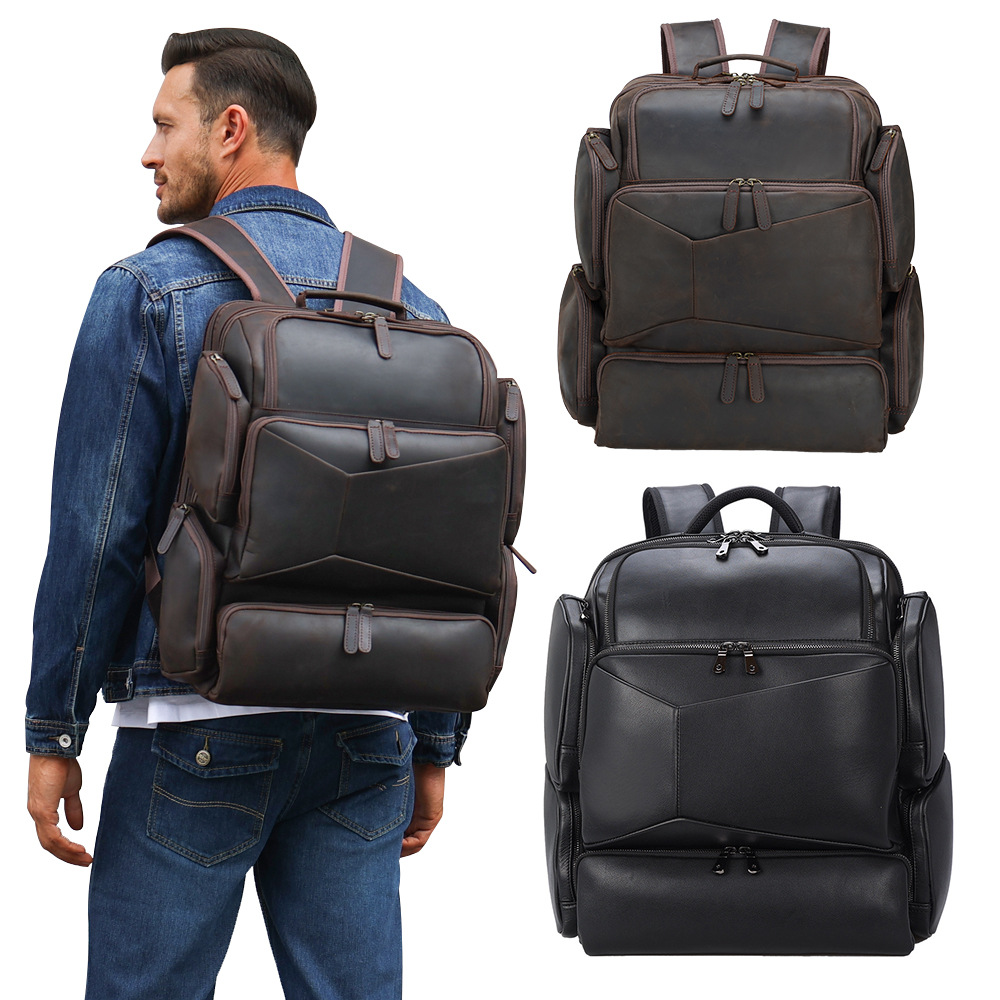 Vintage Travel Genuine Leather 17-inch Outdoor Large Capacity Crazy Horse Computer Backpack