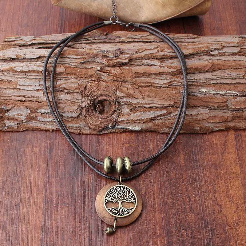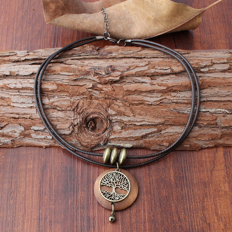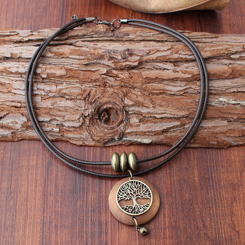 Rope material: wax ropePendant material: alloy, woodTotal length of rope: 40cmPendant size: 3.5*3.5cm