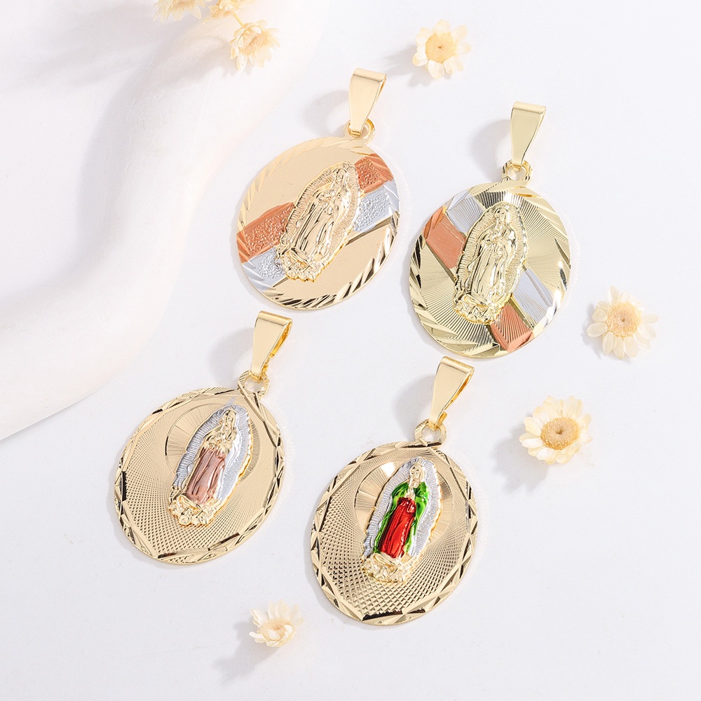 Virgin Mary Copper Car Laminate Gilded Painting Color Personalized Women's Necklace Pendant