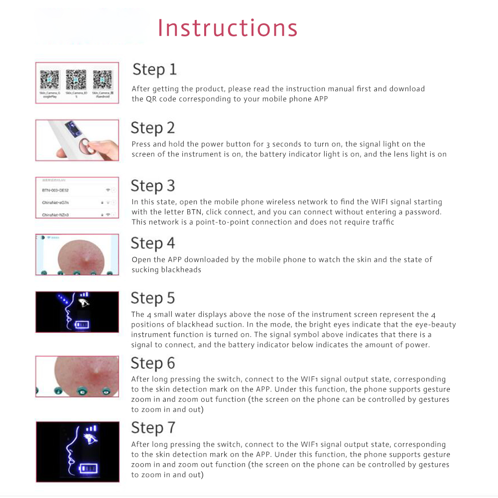 1. Try it with your hands and adjust the suction power. It is recommended to use the first gear for the first use. The liquid with small blackheads should be tested behind the ears for allergies.
