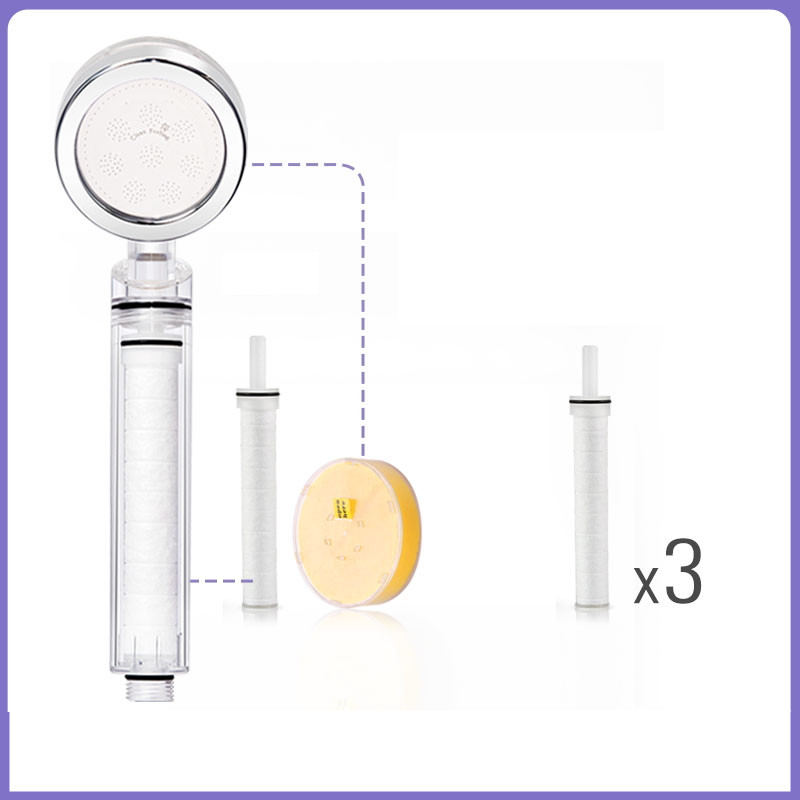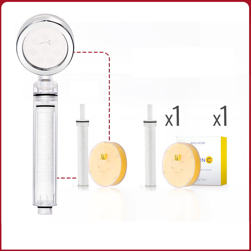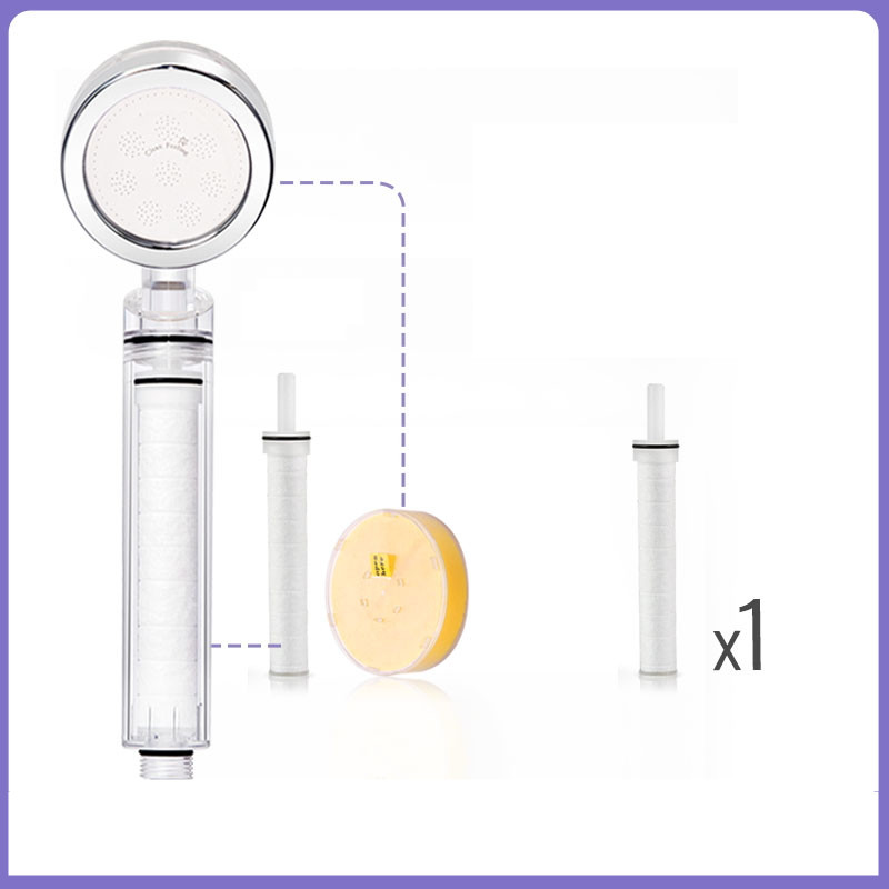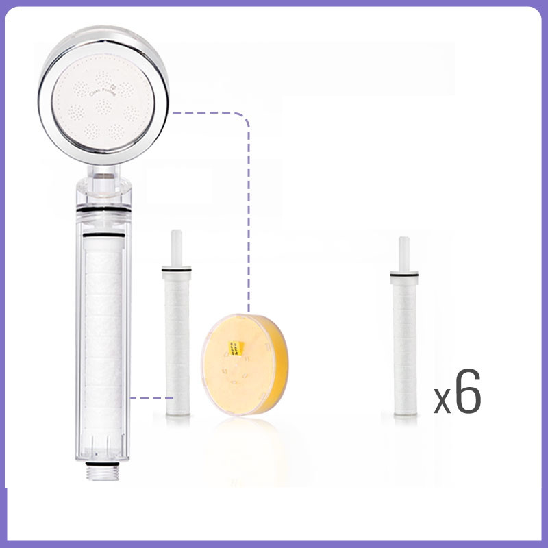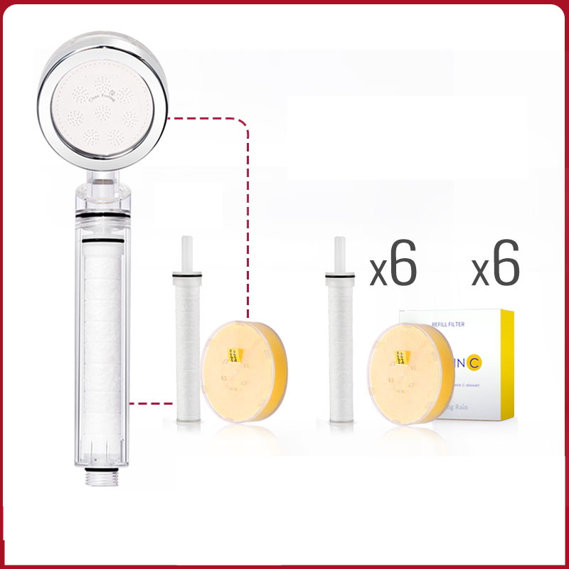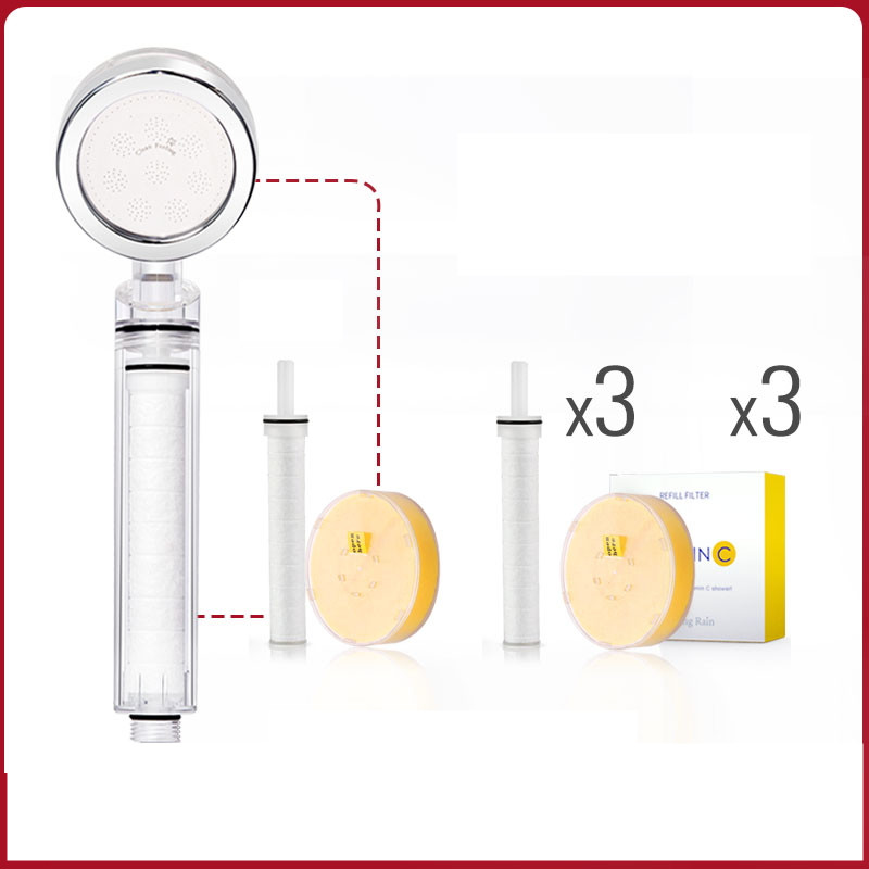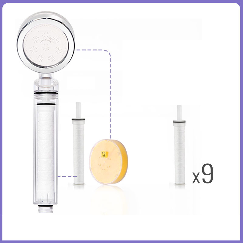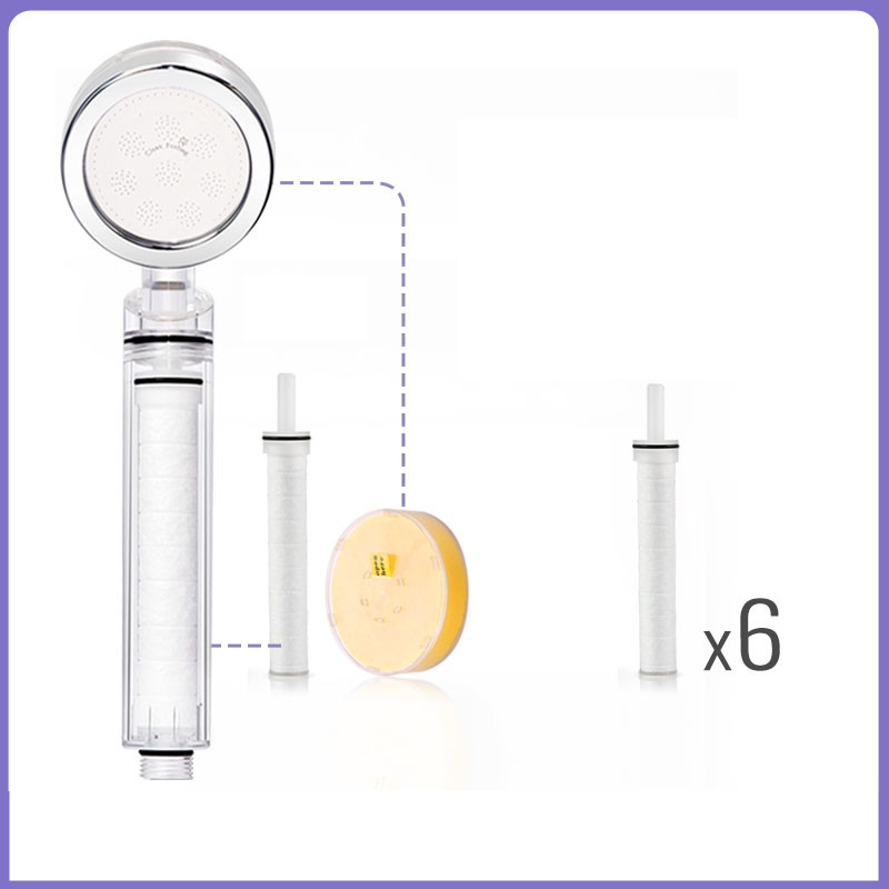 Color classification: Crystal transparent standard (includes filter element, VC) Crystal transparent standard + filter element 1 crystal transparent standard + filter element 3 crystal transparent standard + filter element 6 crystal transparent standard + filter element 9 crystal transparent standard + Dechlorination VC 1 crystal transparent standard + Dechlorination VC 3 crystal transparent standard + Dechlorination VC 6 crystal transparent standard + Dechlorination VC 9 crystal transparent standard + 1 filter element + Dechlorination VC1 crystal Transparent standard + 3 filter elements + 3 dechlorination VC 3 crystal transparent standard + 6 filter elements + 6 dechlorination VC 6 showers