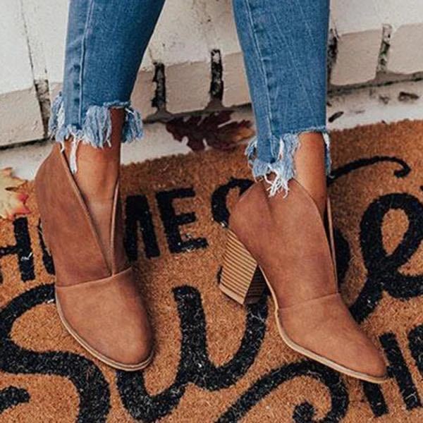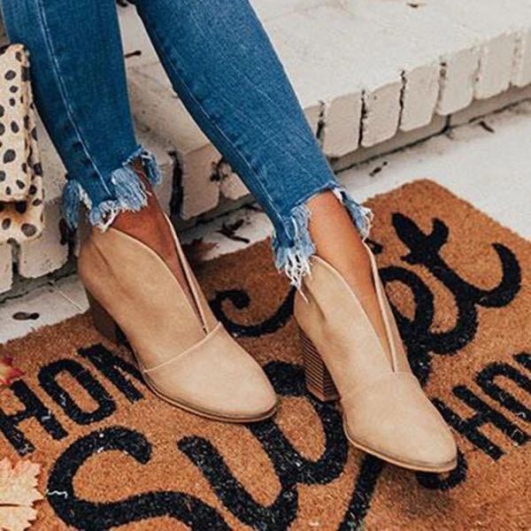 VNew Chunky Heel Thin Solid Color All-match V-mouth Shoes