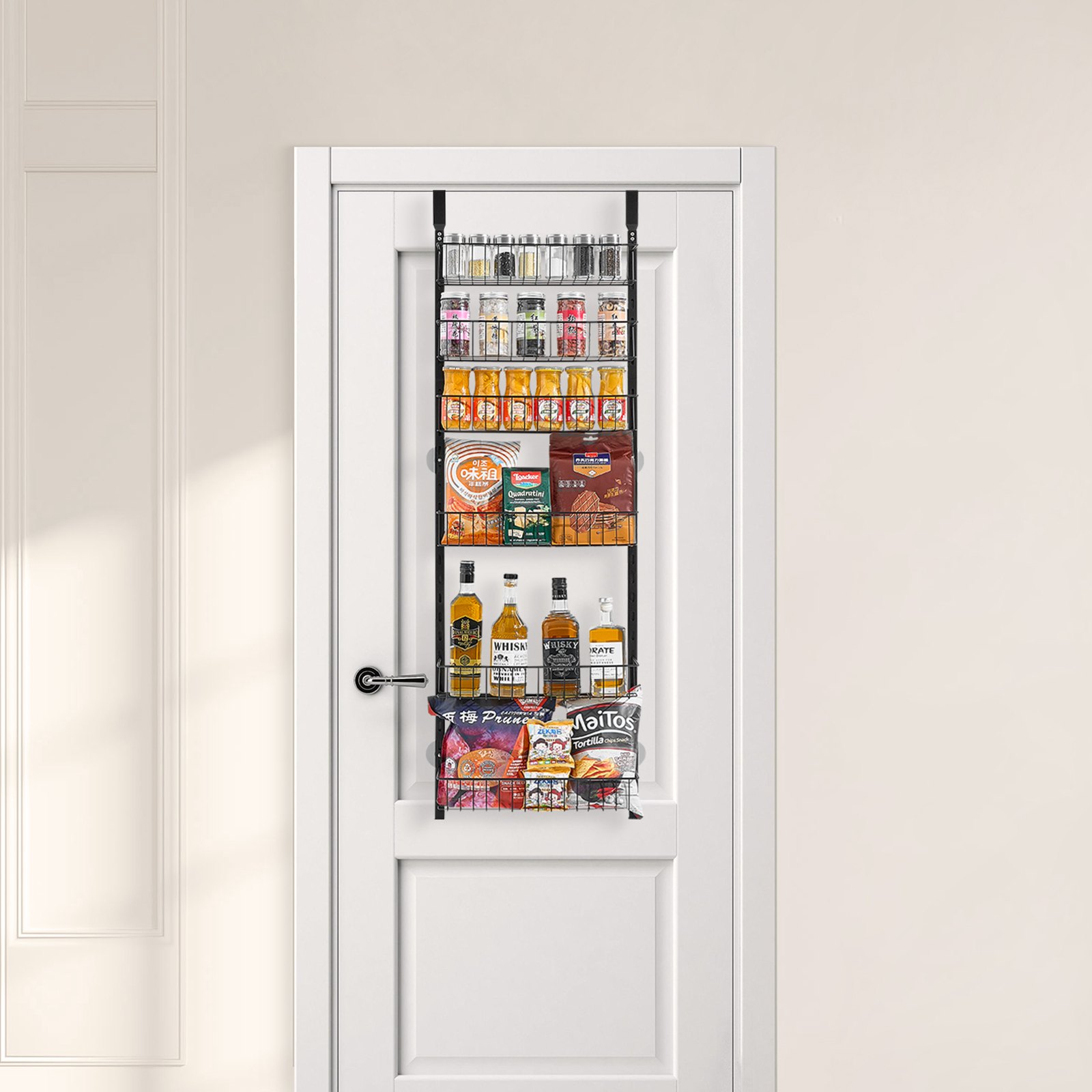 VEVOR Vorratsschrank Speisekammer-Organizer Aufbewahrung über der Tür, 6-stufige Gewürzregale zum Aufhängen aus Stahl, verstellbare Lagerregale für die Wand, für Zuhause Küche Badezimmer, schwarz