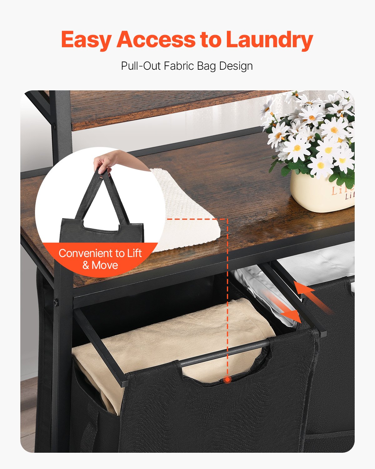 VEVOR Wäschekorb Wäschesortierer mit 4 Ebenen (600D Oxfordstoff), Wäschesammler mit Leiterregalen, Wäschetrenner Wäsche-Sortiersystem für schmutzige Kleidung Waschküche Schwarz