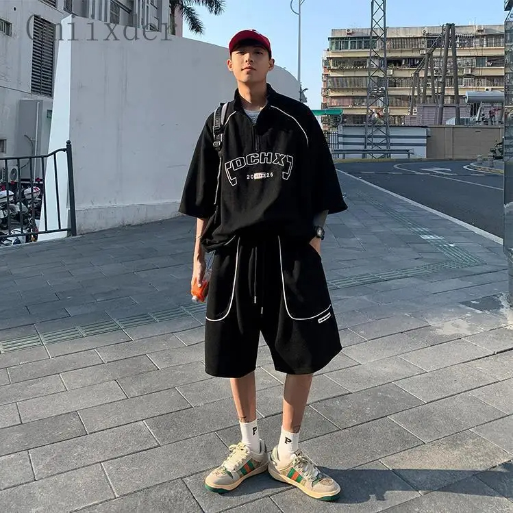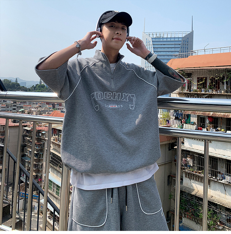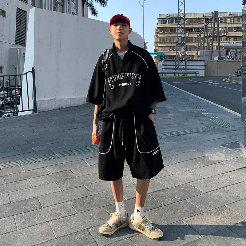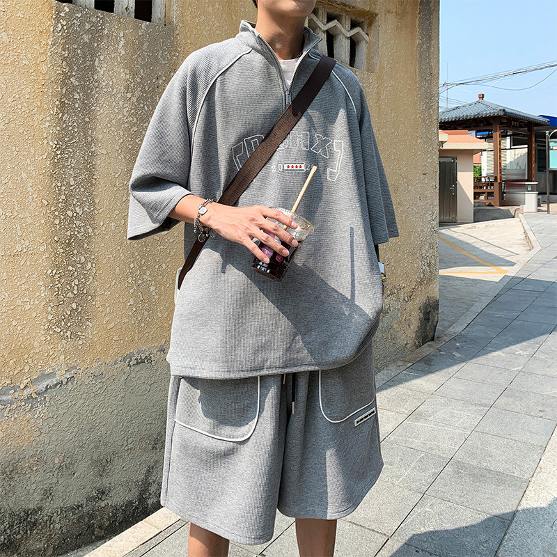 Waffle Sports Shorts Suit Students Hong Kong Style Polo Shirt Short Sleeve Casual