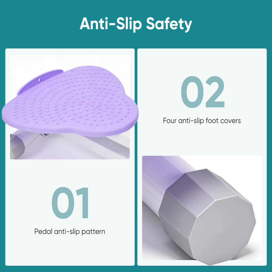 The textured surface of the tabletop is anti-slip and also provides comfort for the sole; the anti-slip pads at the bottom further reinforce stability and prevent slipping during exercise.