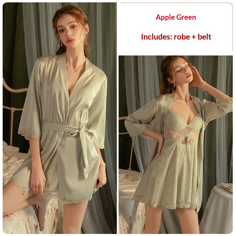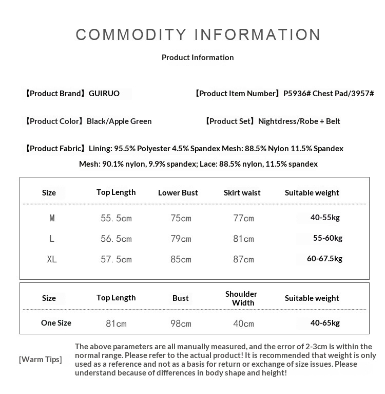 Colors: P5936 Black (Nightgown), 3957 Black (Robe + Belt), P5936 Apple Green (Nightgown), 3957 Apple Green (Robe + Belt)
